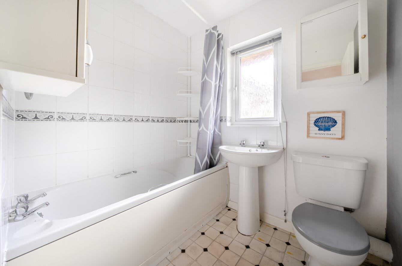 Bathroom: - Comprising bath with shower over, wash hand basin, WC.