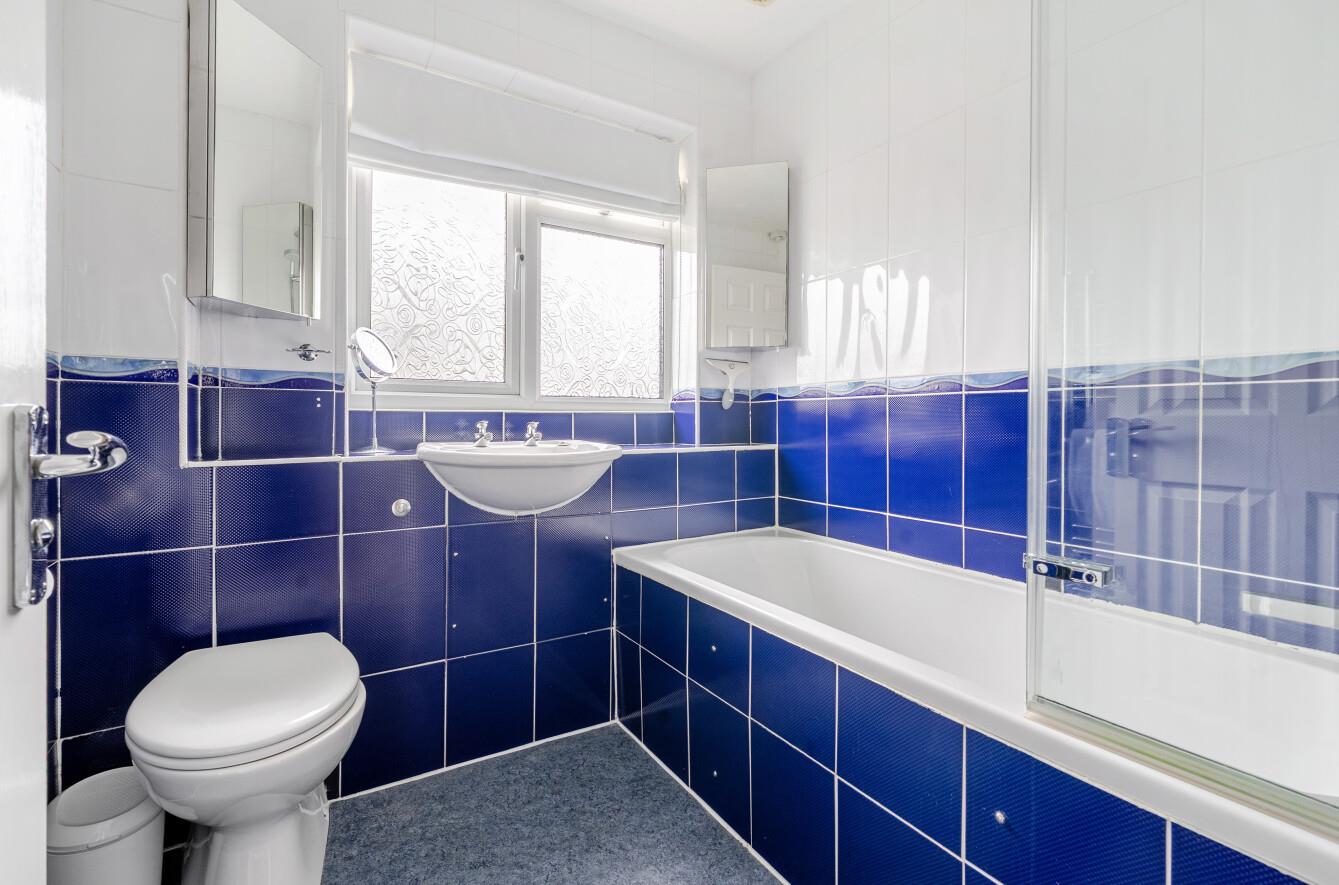 Bathroom: - Suite comprising bath with shower unit over and glazed screen, wash basin, WC, tiled walls.