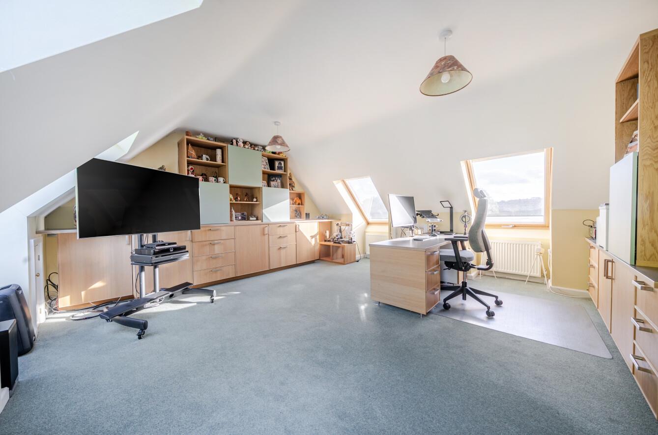 Bedroom 6/Study: - 21'11" x 17'2" (6.67m x 5.24m) Access to eaves storage, currently configured as a home office.