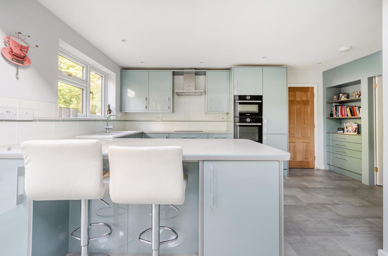 Kitchen / Breakfast Room: - 17' x 16'11" (5.19m x 5.16m) Built in oven, built in microwave/combination oven, built in induction hob, fitted extractor hood, integrated dishwasher, space for fridge freezer, breakfast bar, space for table and chairs, walk in larder cupboard leading to garage.