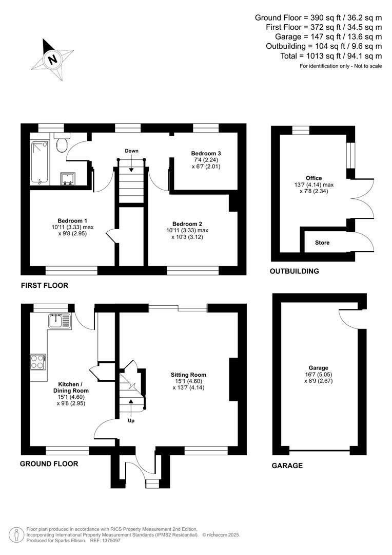 Approximate Area: - 1013sqft/94.1sqm (Including garage and outbuilding)