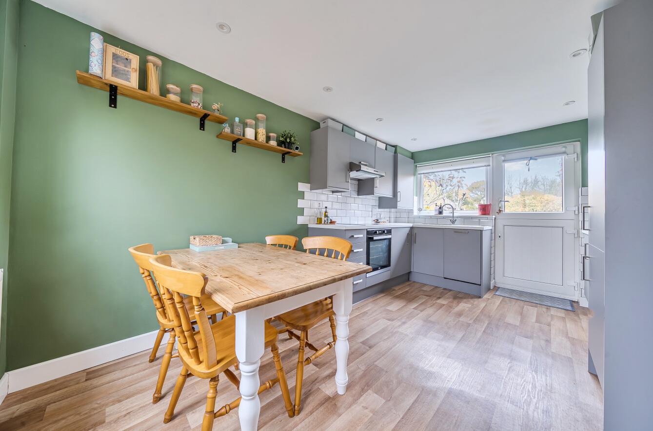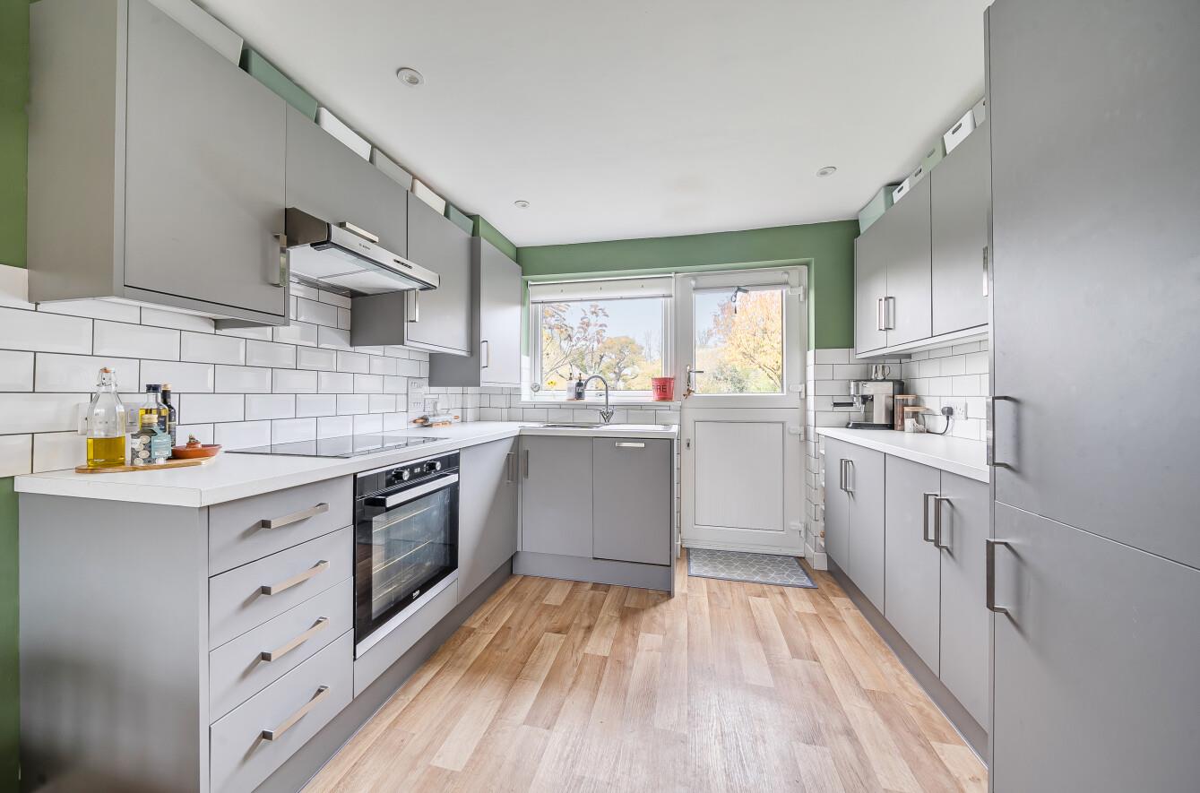 Kitchen/Dining Room: - 15'1" x 9'8" (4.60m x 2.95m) An attractive range of refitted grey units, built in electric oven and electric hob with extractor hood over, integrated fridge/freezer, integrated dishwasher, space for table and chairs, door to rear garden.