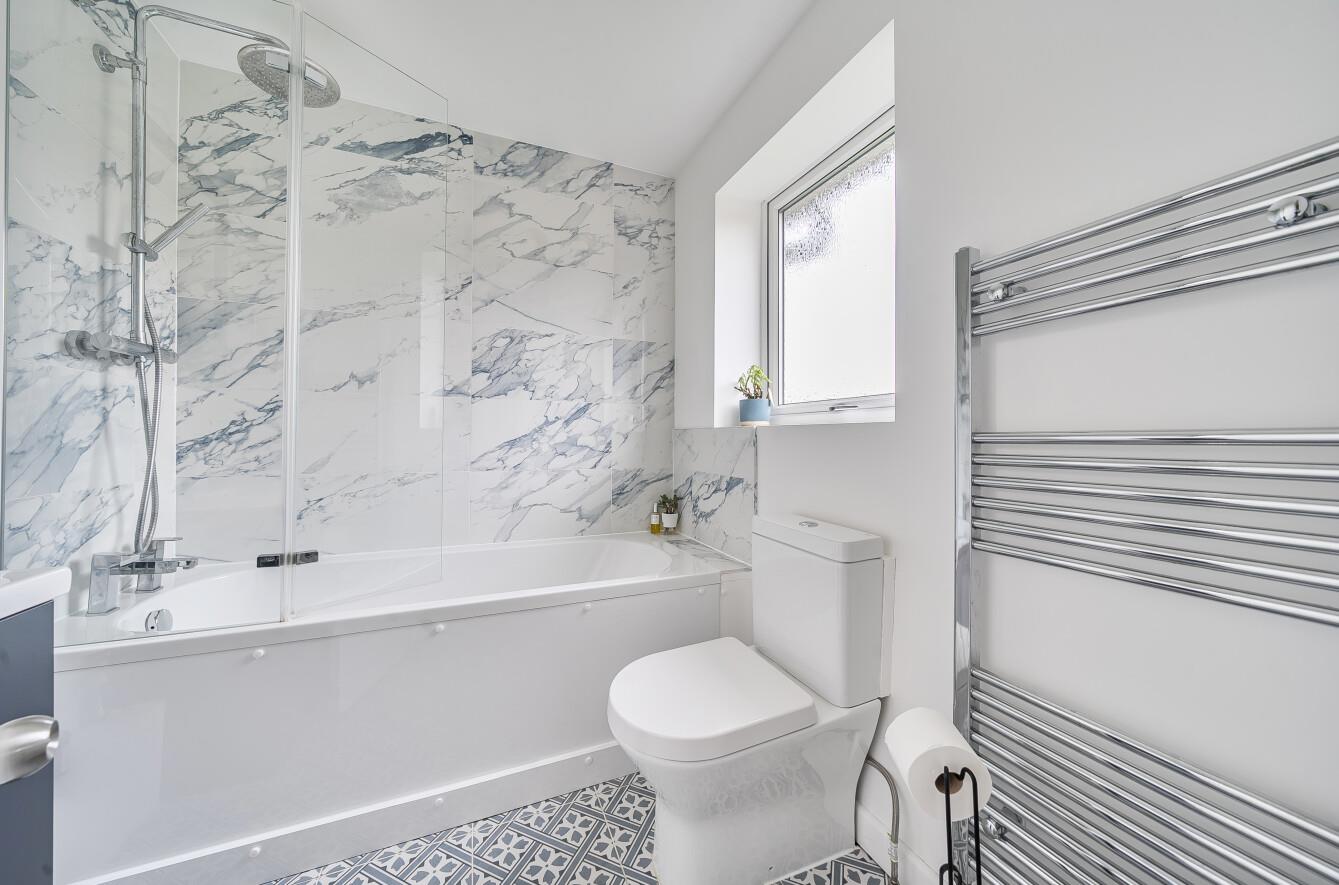 Bathroom: - Re-fitted modern white suite comprising bath with mixer tap, separate shower unit over, wash basin with cupboard under, WC.