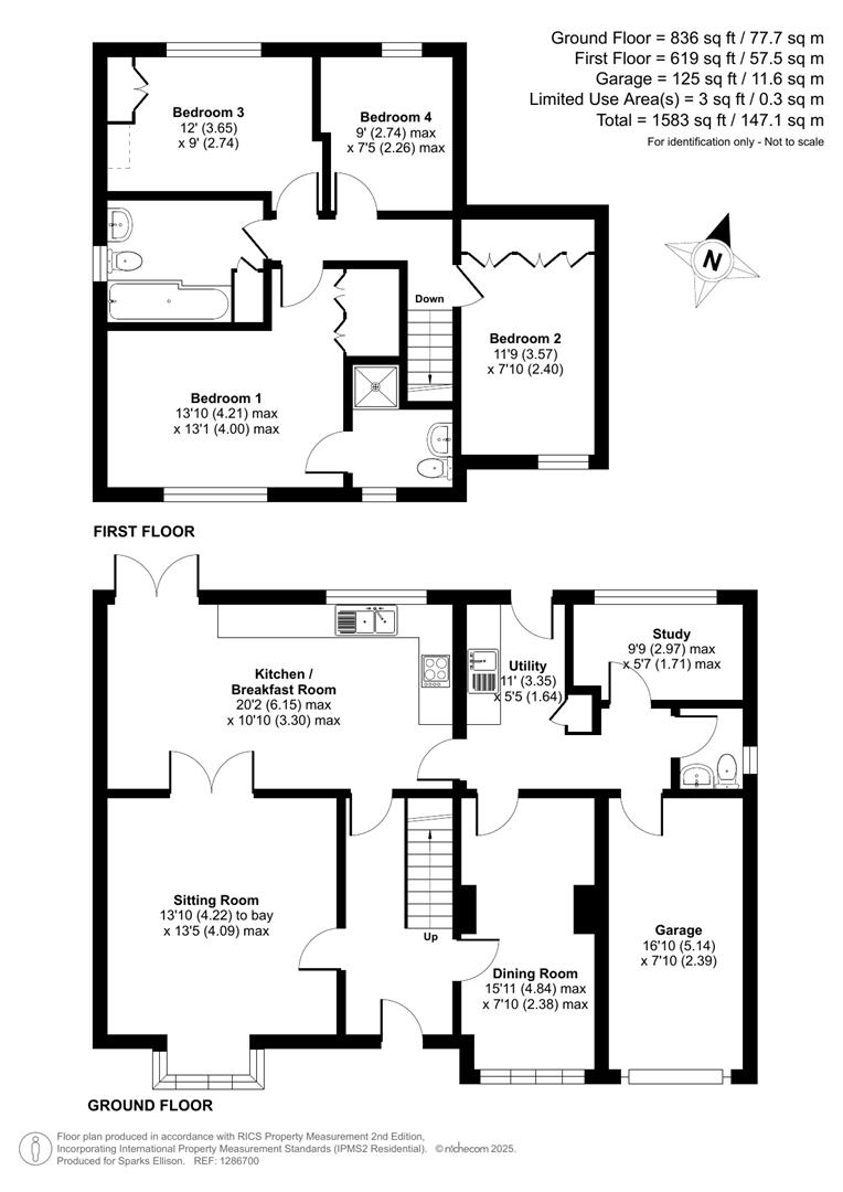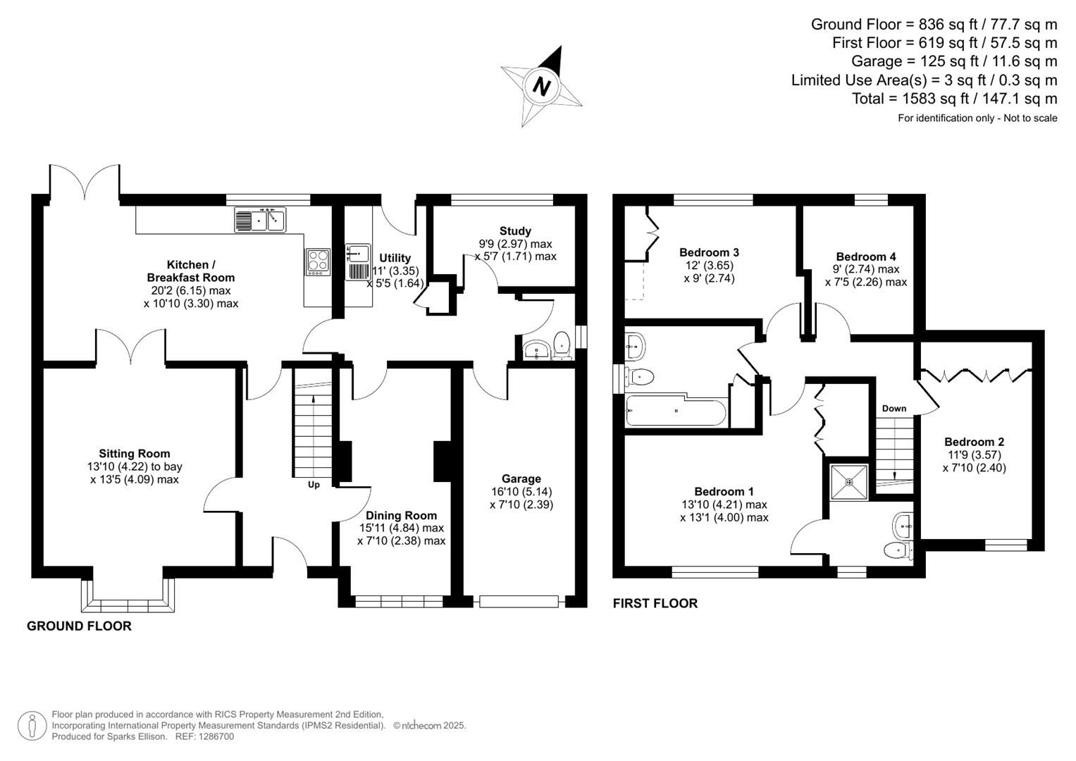 Approximate Area: - 1583sqft/147.1sqm (including garage and limited use areas)