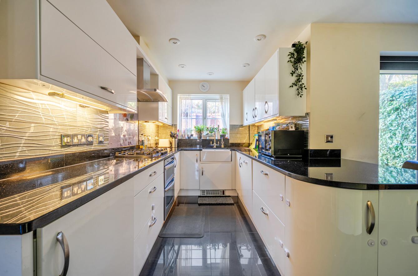 Kitchen: - 13'6" x 7'3" (4.11m x 2.21m) Built in oven, built in gas hob, fitted extractor hood, integrated dishwasher, integrated fridge, breakfast bar.