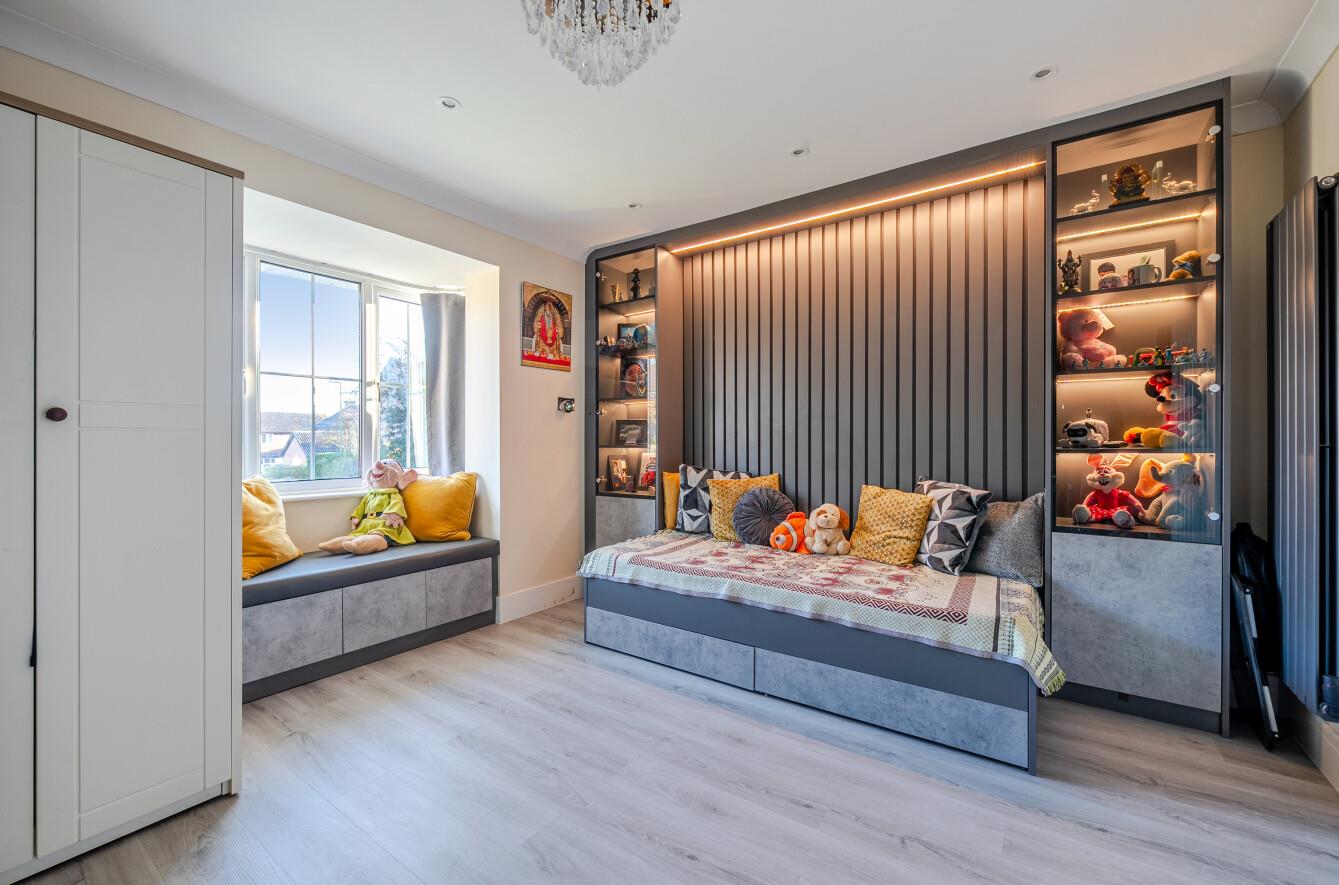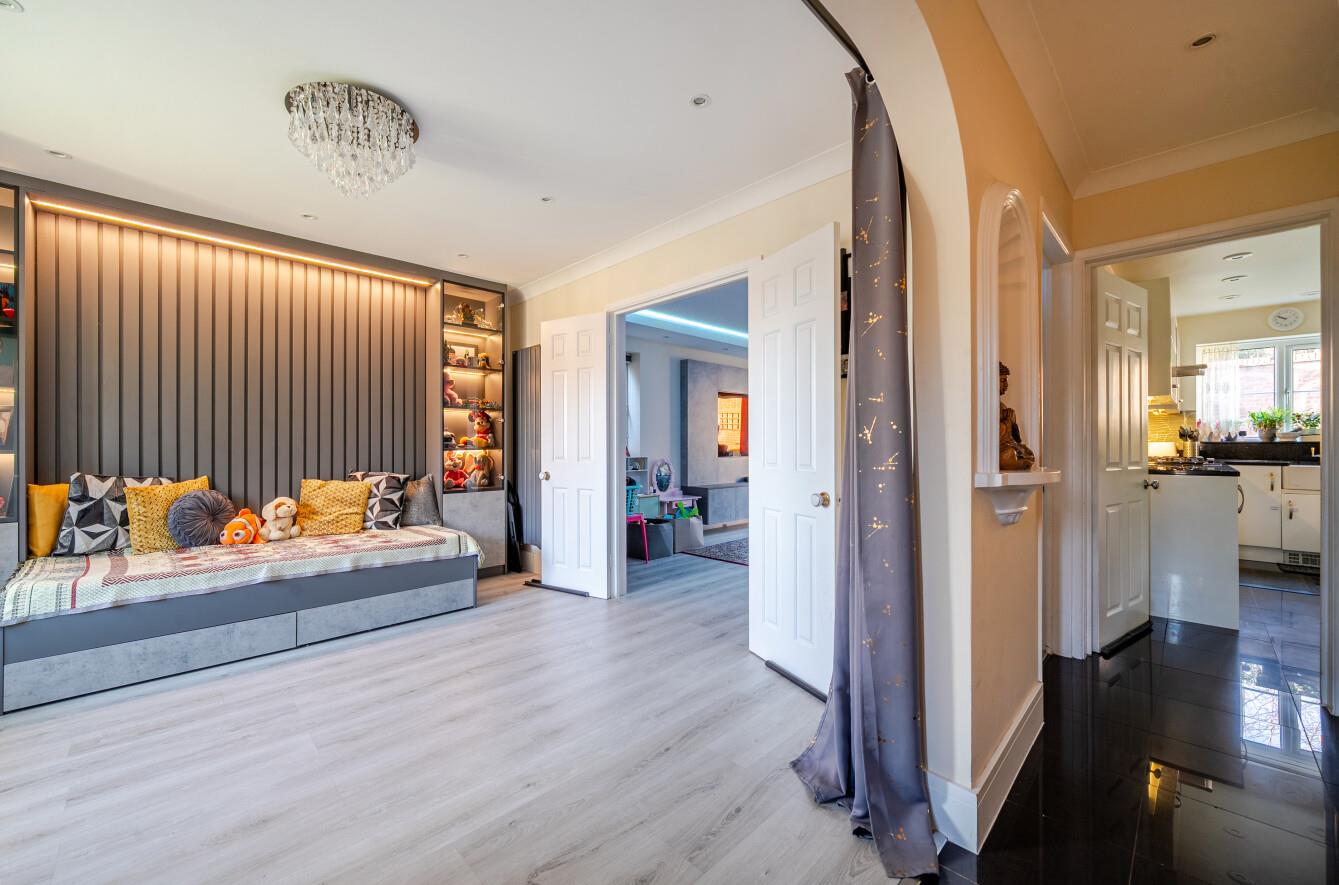 Family Room: - 21'1" x 10'10" (3.68m x 3.30m) Feature wall, built in window seat with storage, built in day bed, underfloor heating.