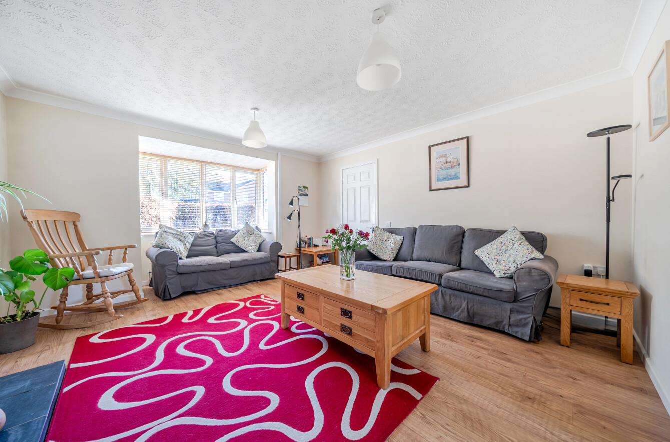 Sitting Room: - 13'10" x 13' (4.21m x 3.96m) A feature fireplace with inset log burner, Bay window, laminate wood floor.