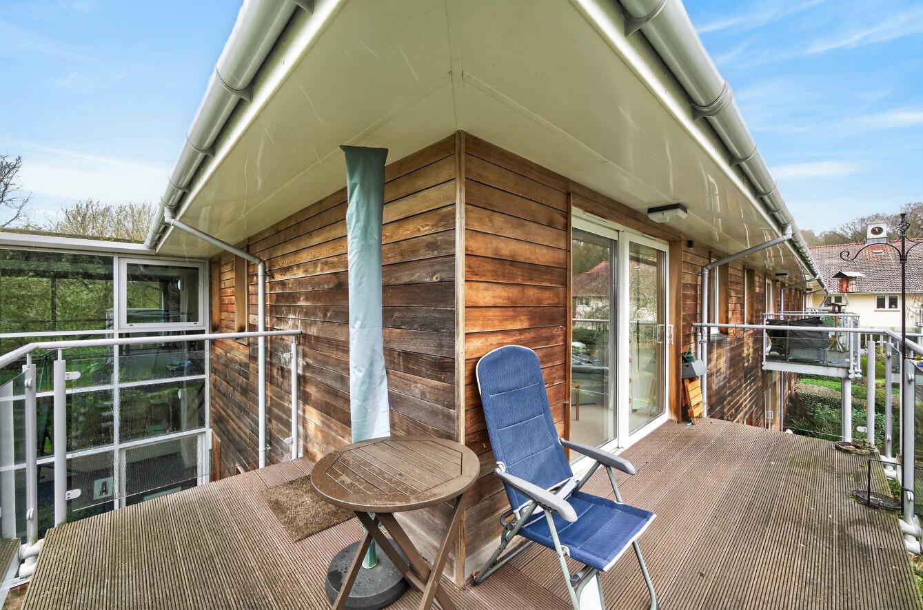 Balcony: - 17'11" x 11'8" (5.47m x 3.56m) Wooden decking area, wraparound balcony providing excellent views onto the front of the development and Woodland opposite.