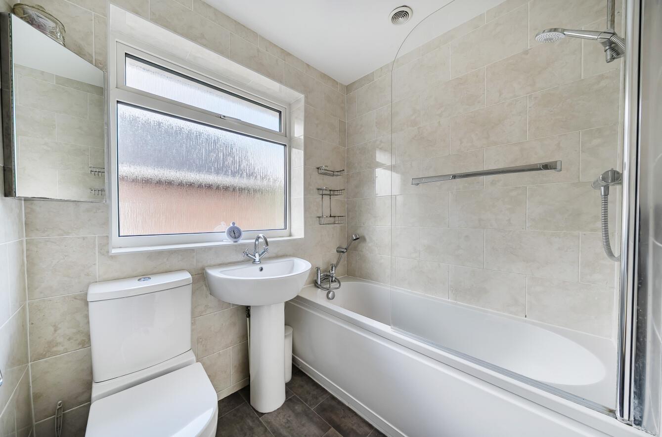 Bathroom: - Comprising bath with shower over, wash hand basin, WC.