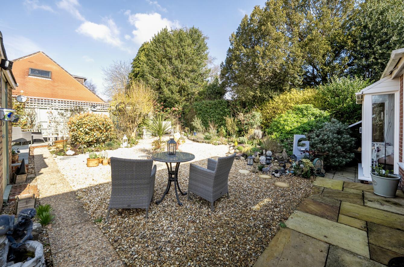 Rear: - Approximately 45 ft x 40 ft. The rear garden has been delightfully landscaped with gravelled areas interspersed with well stocked borders and planting, together with patio areas enclosed by hedging, walling and fencing. Brick built shed.