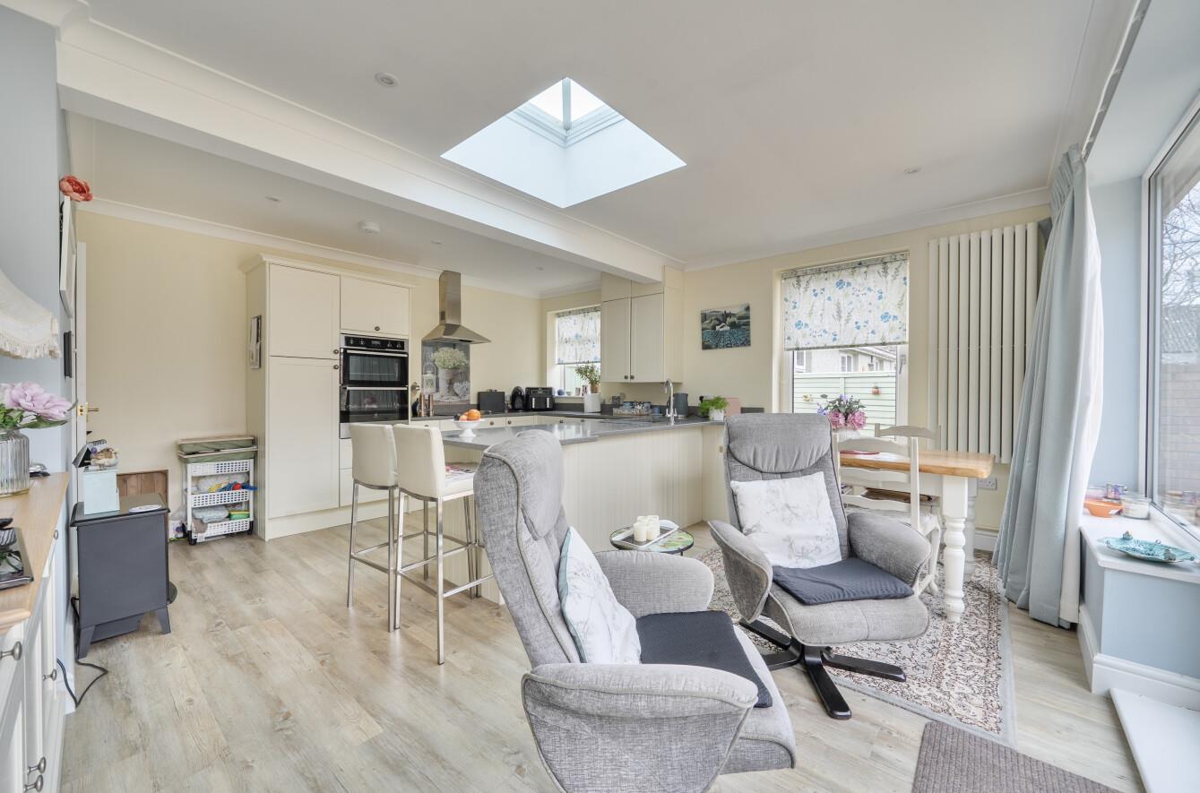Kitchen/Dining Room: - 17'7" x 15'7" (5.35m x 15'7" (5.35m x 4.74m) Fitted with a comprehensive range of units and quartz worktops, built in electric double oven, induction hob with extractor hood over, integrated dishwasher and fridge. Skylight window, space for table and chairs, double doors to rear garden.