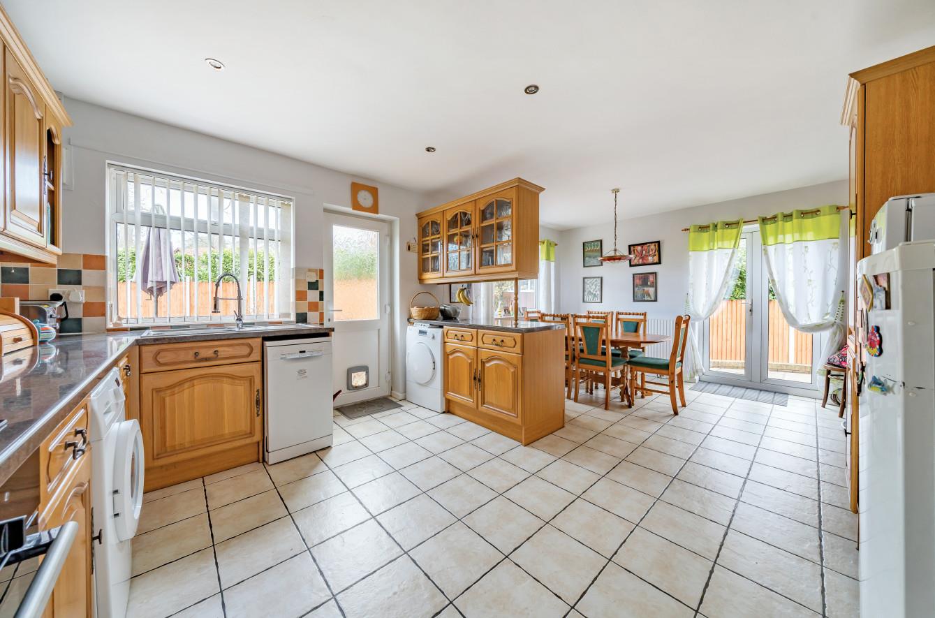 Kitchen/Dining Room: - 20' x 13' (6.10m x 3.96m) Range of fitted units, electric double oven, electric hob with extractor hood over, space and plumbing for further appliances, tiled floor, space for table and chairs, double doors to outsdie.