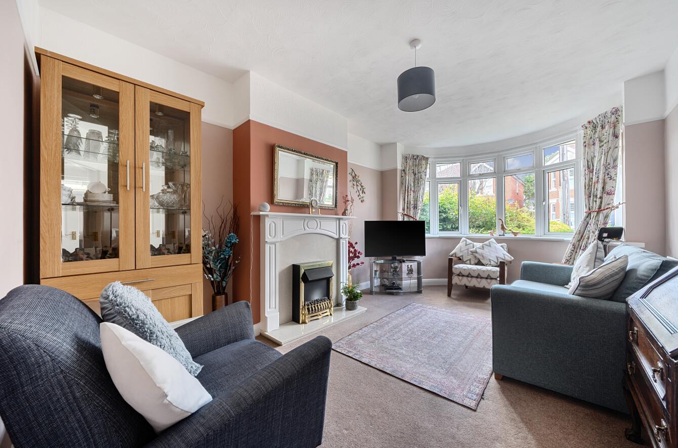 Sitting Room: - 16'2 into bay x 10'7" (4.93m x 3.23m) Bay window, open fireplace.