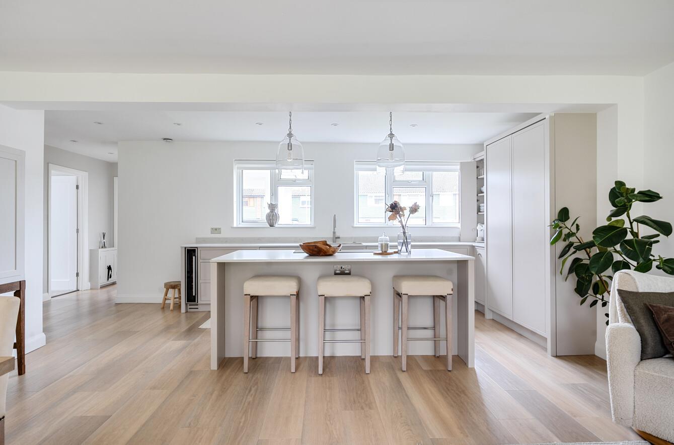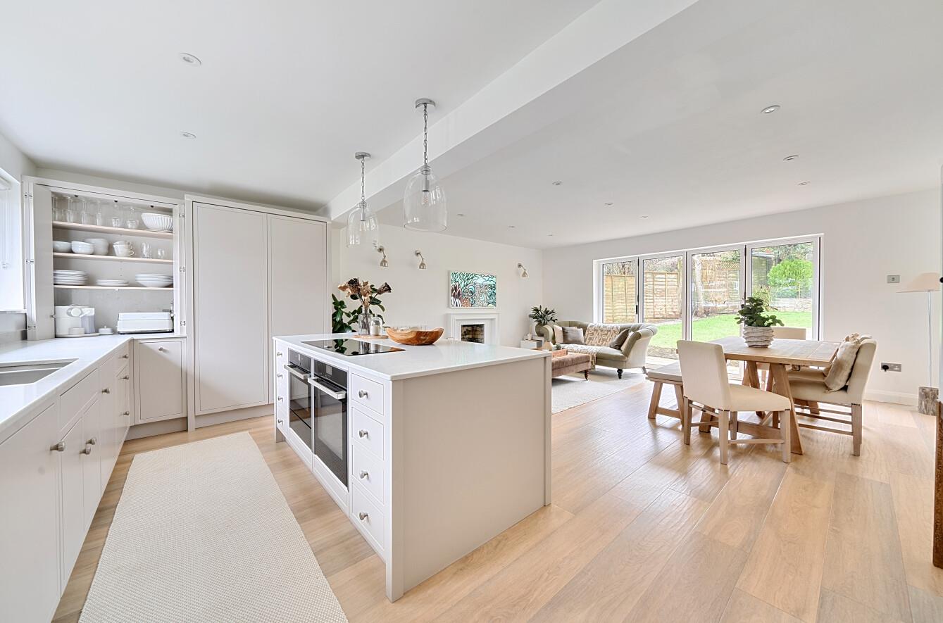 Kitchen/Dining/Living Space: - 23' x 17'10" (7.00m x 5.43m) A magnificent open plan space incorporating the kitchen, living area and dining space. The kitchen has been re-fitted with a comprehensive range of modern taupe coloured units incorporating quartz worktops, sink unit with Quooker tap providing instant boiling water and filtered water, integrated dishwasher, Neff electric oven and combination microwave/oven, warming drawer, integrated full height fridge and under counter freezer, larder style cupboard, extensive feature island unit with inset induction hob and breakfast bar seating 4, wine cooler. The living space provides ample room for sofas and chairs together with the dining table and bi-fold doors opening onto the rear garden with feature open fireplace.