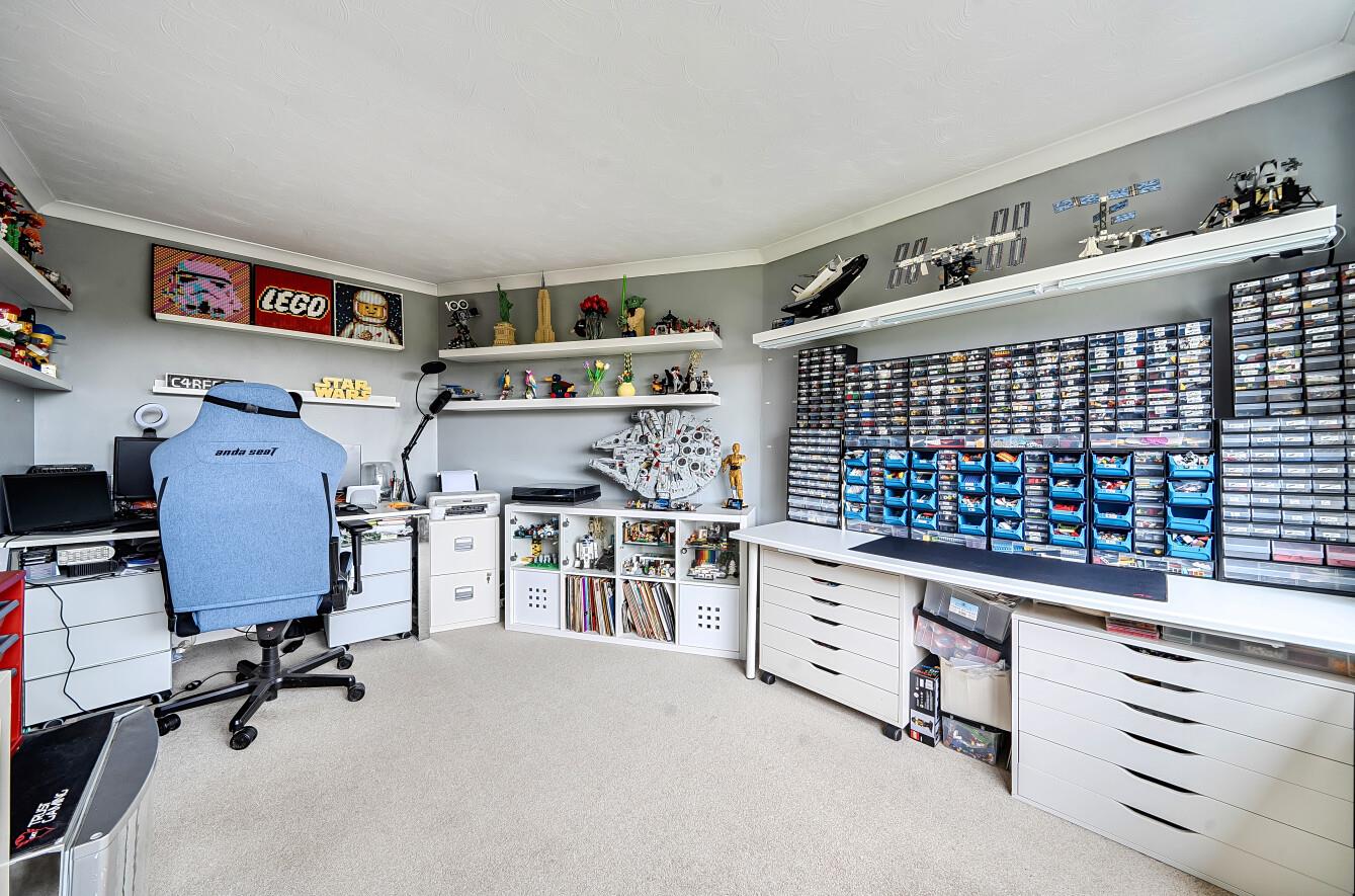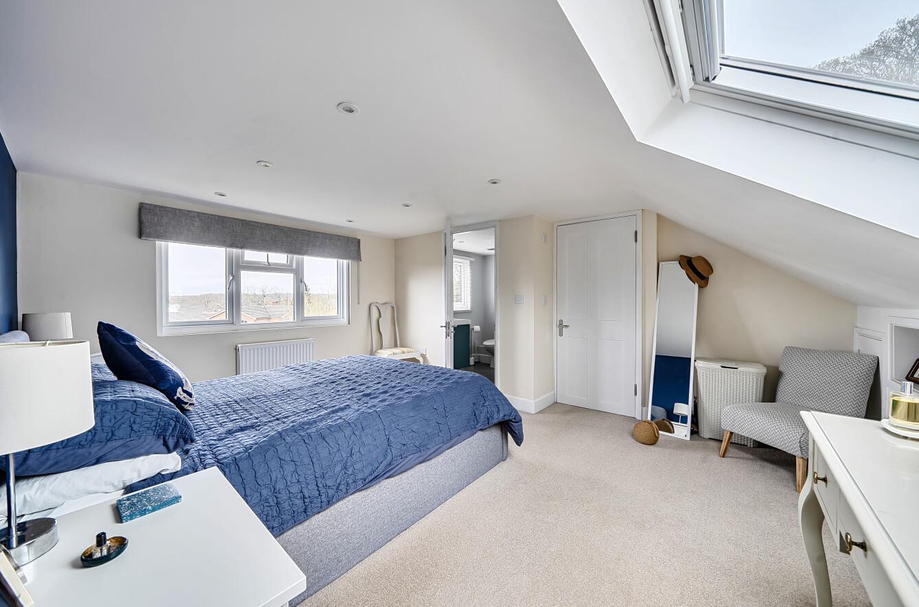 Bedroom 1: - 16'5" x 14'1" (5.00m x 4.30m ) Range of built in storage drawers and access to eaves storage space. Velux window to the front, dormer window to the rear providing excellent views, walk in wardrobe.