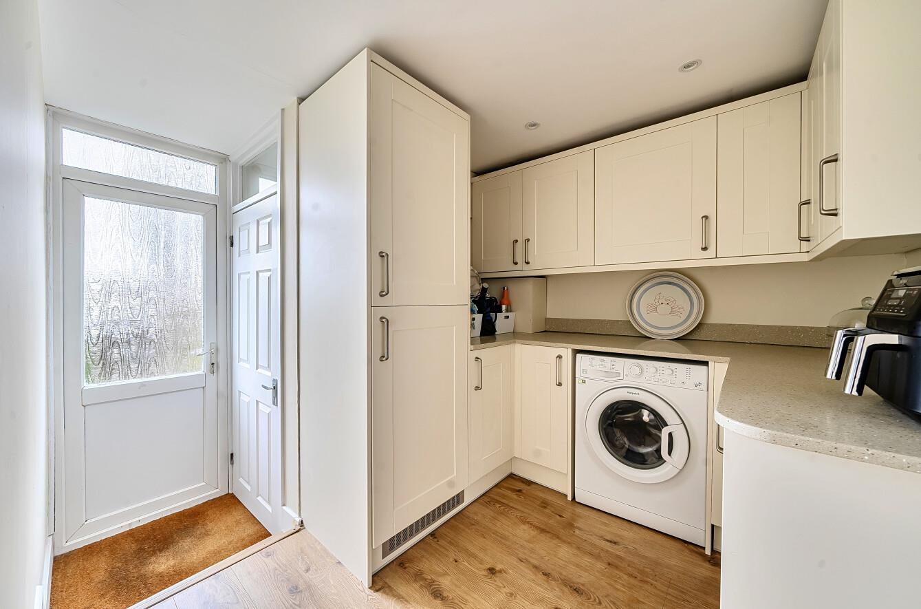 Utility Room: - 8'5" x 7'5" (2.56m x 2.26m) A range of matching units built in fridge freezer space and plumbing for washing machine, boiler, door to garage, door to rear garden.