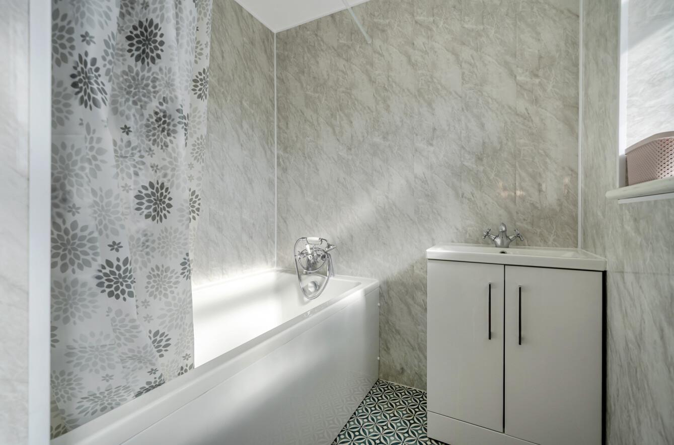 Bathroom: - Modern suite comprising bath, wash basin with cupboard under and WC.