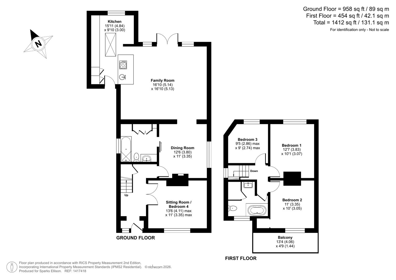 Approximate Area: - 1412 sq ft / 131.1 sq m