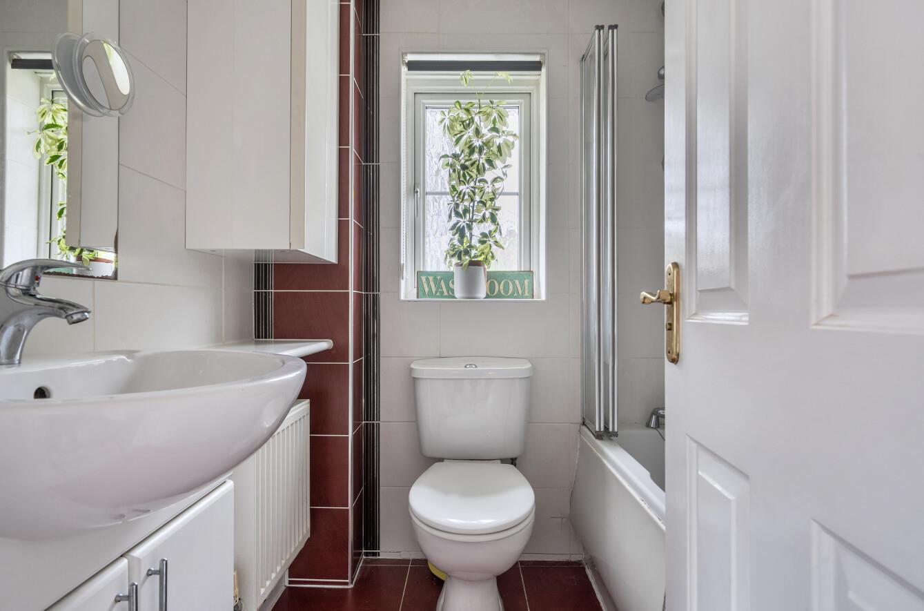 Bathroom: - White suite with chrome fitments comprising bath with shower over, wash hand basin with cupboard under, w.c.