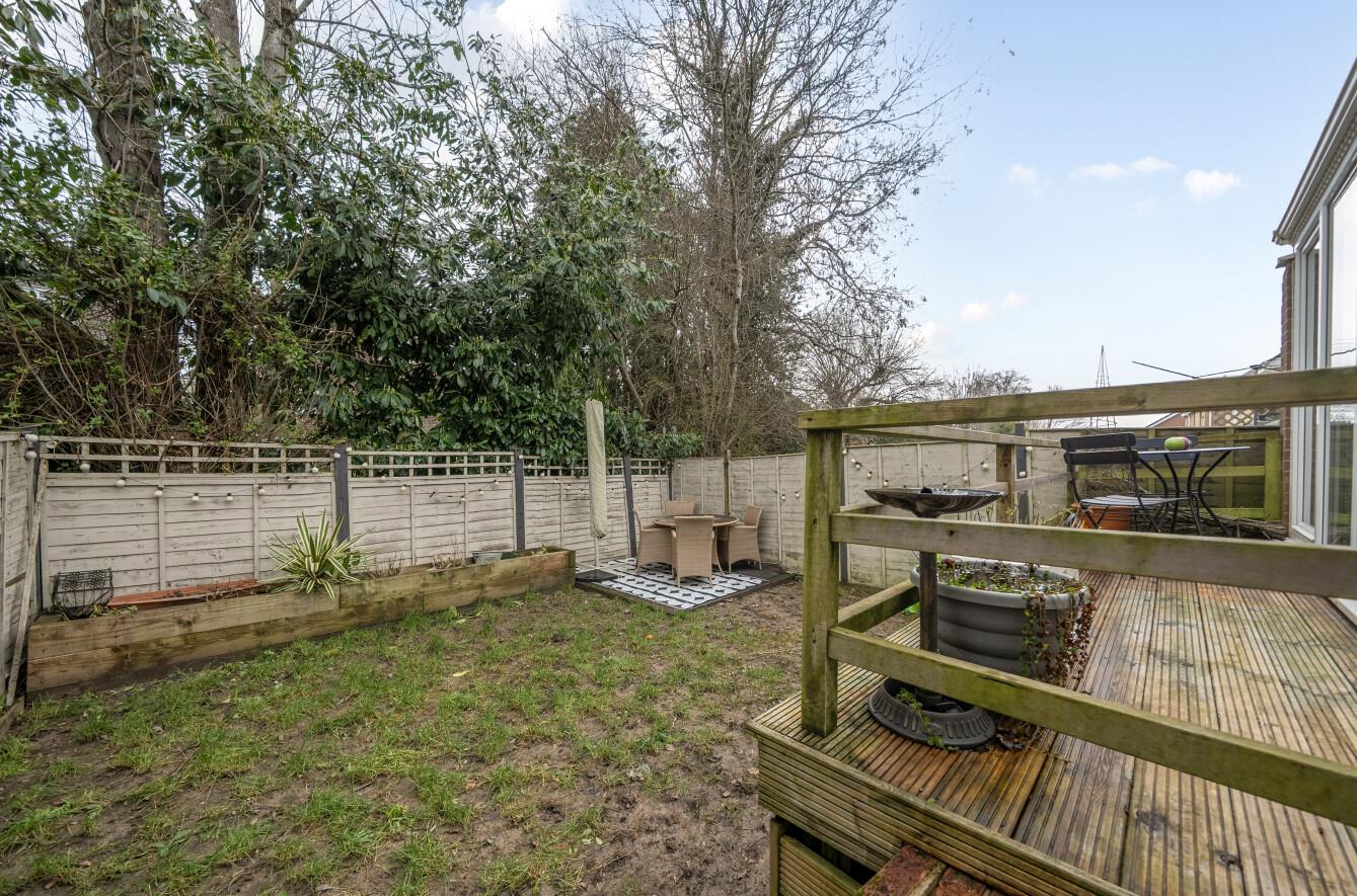 Rear Garden: - Measures approximately 22' x 21' from conservatory and comprises area laid to timber deck, area laid to lawn, further area laid to timber deck, garden shed with power and entry to front and rear.