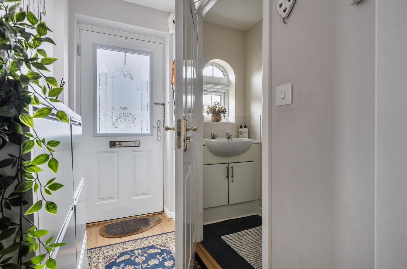 Cloakroom: - White suite with chrome fitments comprising wash hand basin, w.c.