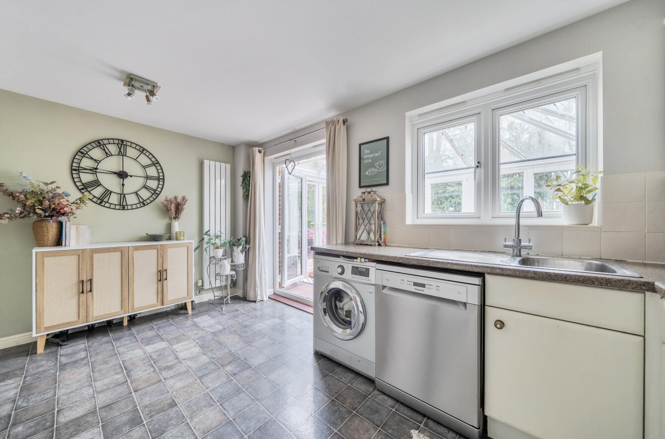Kitchen/Breakfast Room: - 14'7" x 9'1" (4.45m x 2.76m) Range of units, built in oven, built in four ring gas hob, integrated extractor hood, space and plumbing for washing machine, space and plumbing for dishwasher, space for fridge freezer, space for table and chairs, boiler in cupboard, understairs storage cupboard.