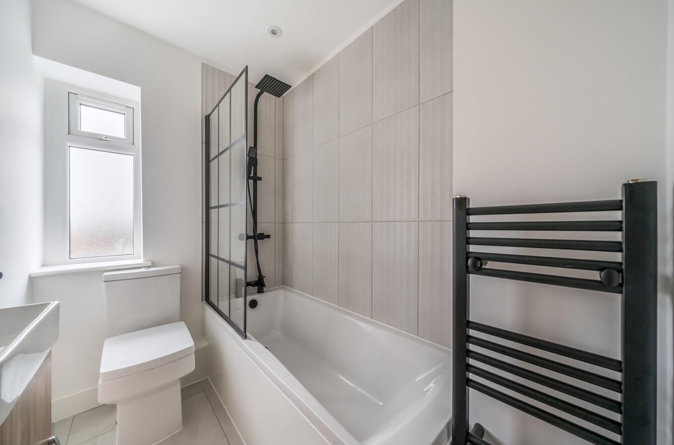 Bathroom: - Comprising bath with shower over, wash hand basin, WC.