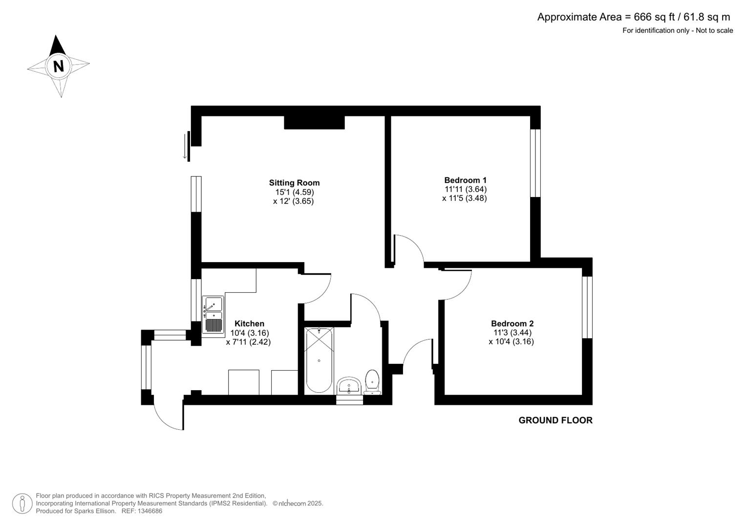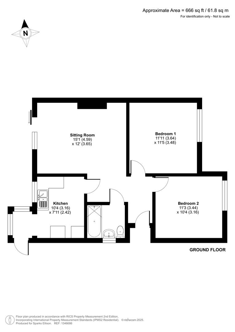 Bedroom 2: - 11'3" x 10'4" (3.44m x 3.16m) Laminate wood floor.