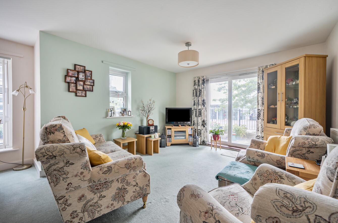 Living Room: - 24'6" x 11'10" (7.47m x 3.60m) Patio doors to terrace, bay window providing space for table and chairs, storage cupboard, open plan to Kitchen.