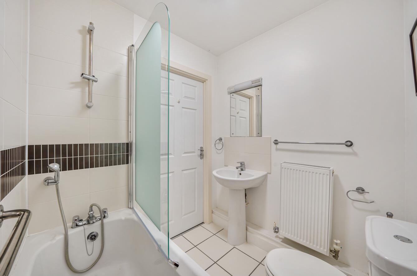 Bathroom: - Suite comprising bath with mixer tap and shower attachment, wash basin, WC, tiled floor.