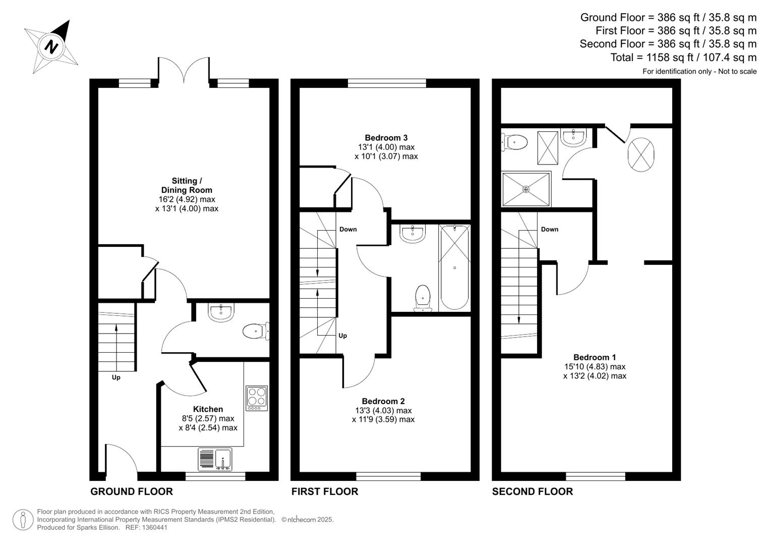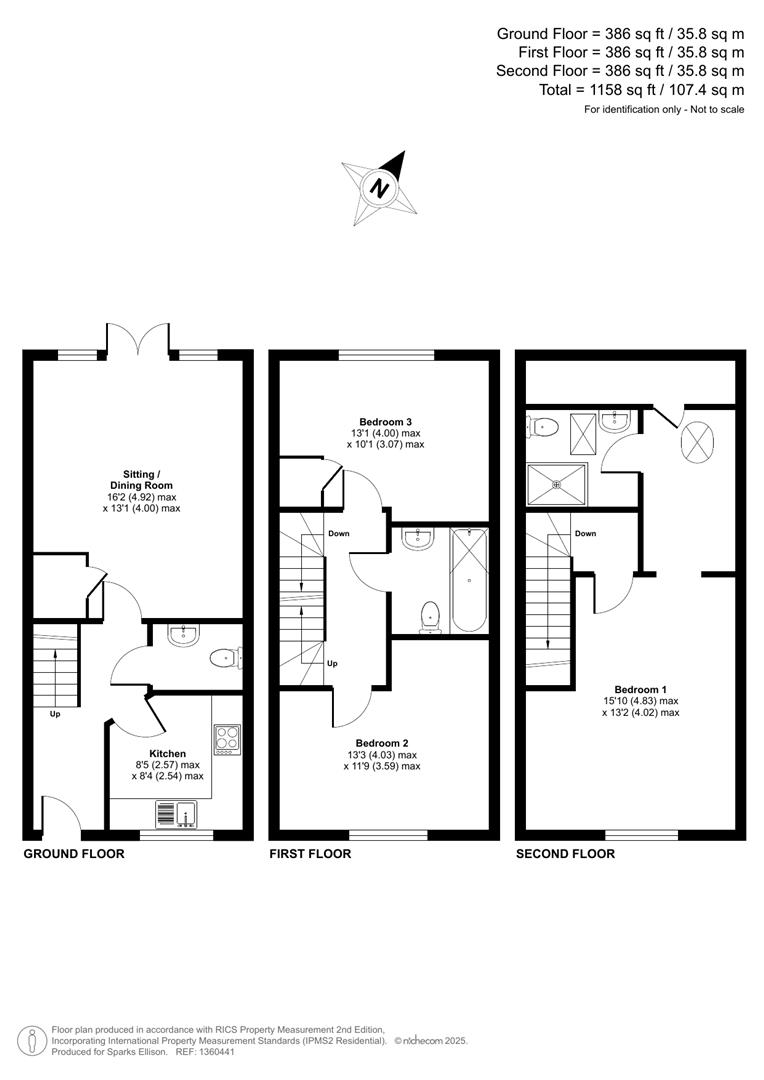 Approximate Area: - 1158sqft/107.4sqm