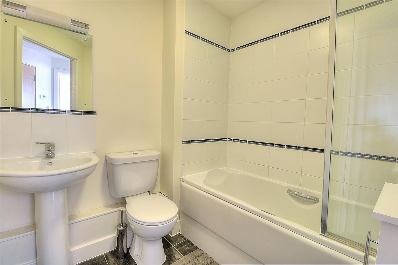 Bathroom: - 6'8" x 6'5" (2.03m x 1.96m) White suite with chrome fitments comprising bath with mixer tap and shower attachment, wash hand basin, w.c.