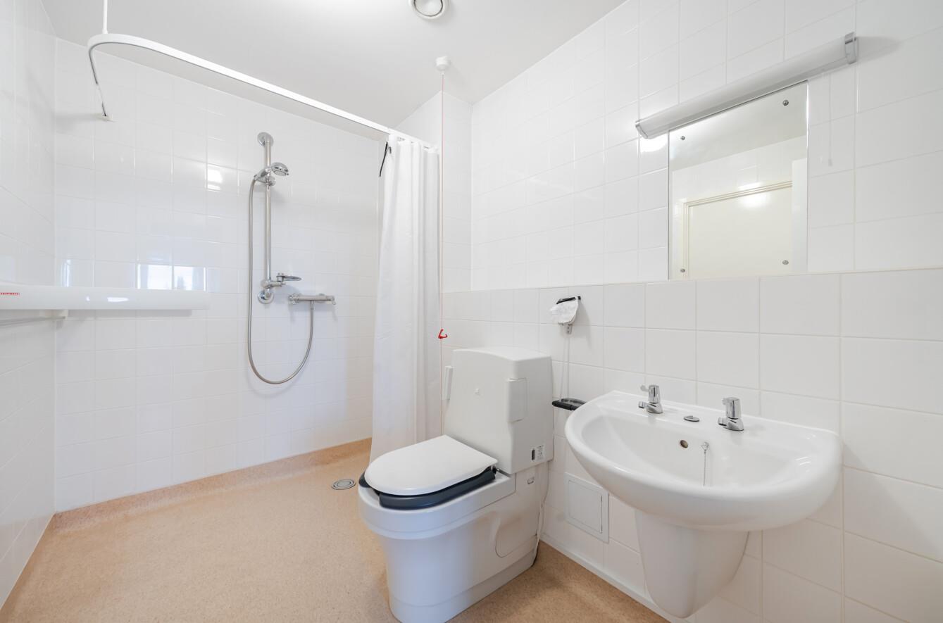 Wet Room: - Jack and Jill arrangement with bedroom 1 and reception hall. Open shower area, wash basin, WC, tiled walls.