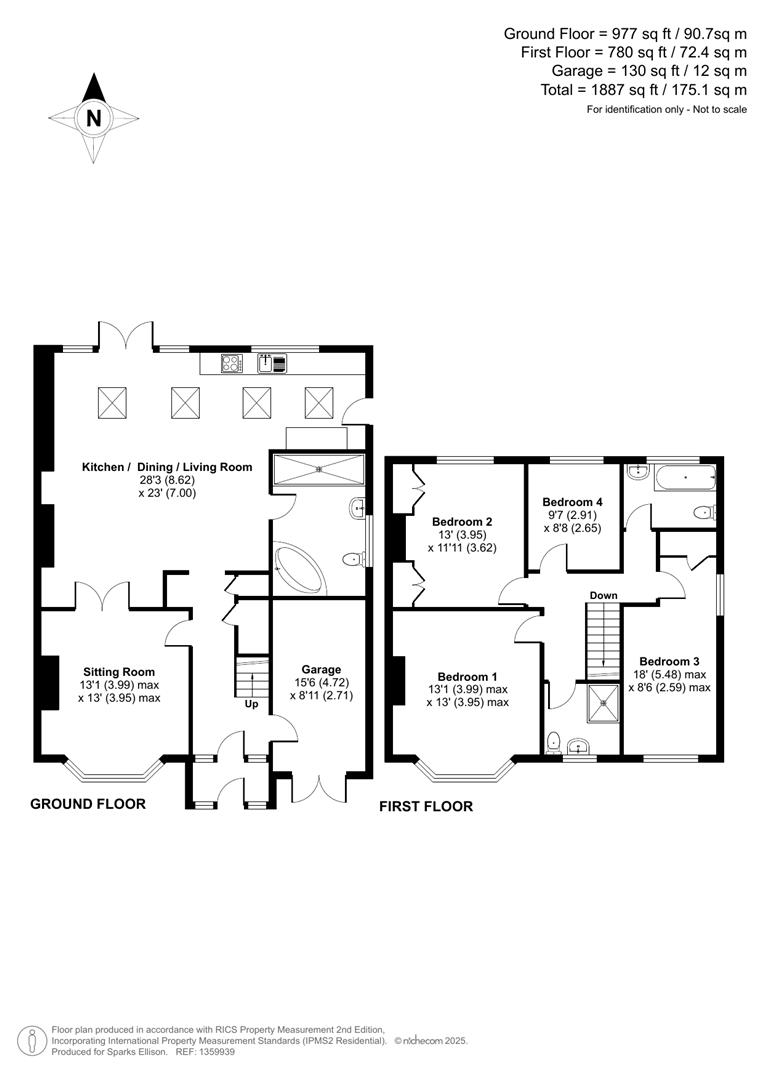 Approximate Area: - 1887sqft / 175.1sqm (Including garage)