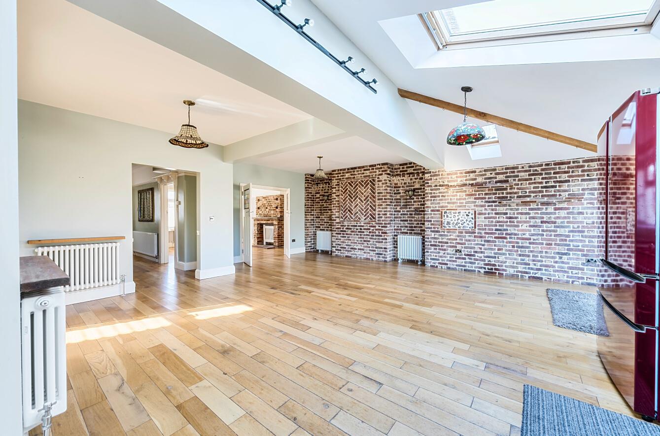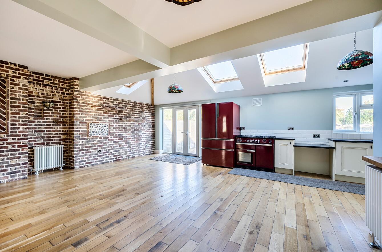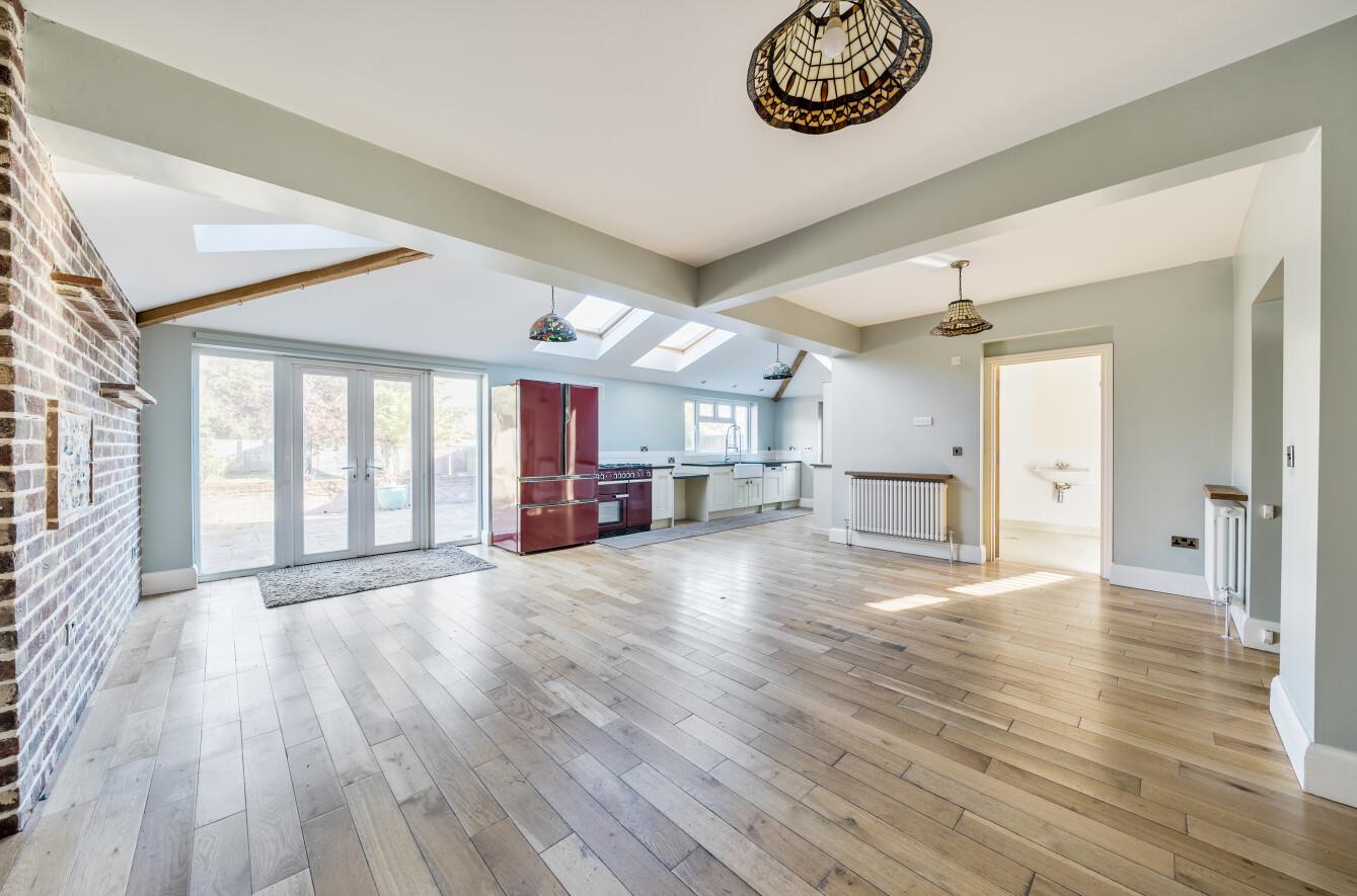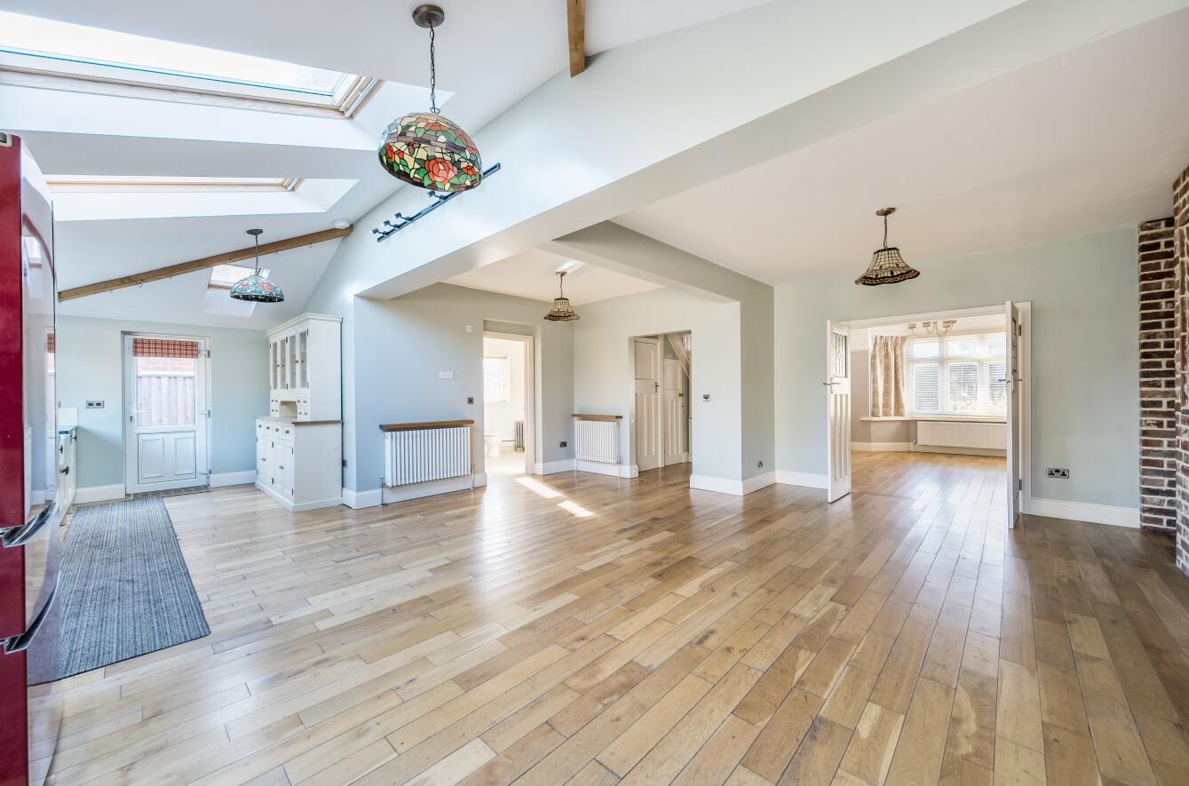 Kitchen/Dining/Living Room: - 28'3" x 23' (8.62m x 7.00m) This impressive room stretches across the full width of the property to the rear with wooden flooring throughout, feature brick wall and part vaulted ceiling. The kitchen area has a range of units and granite worktops incorporating a Butler sink, integrated dishwasher, space and plumbing for appliances, door to side path. The sitting/dining areas afford ample space for table and chairs and sofas with double doors to rear garden.