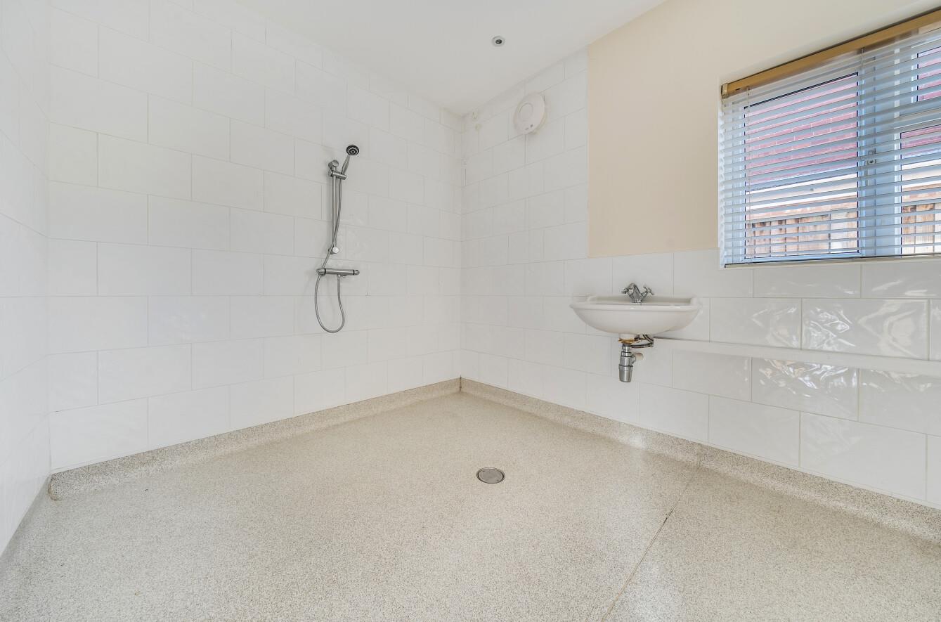 Shower Room: - Suite comprising double width shower cubicle, wash basin, WC, tiled walls.