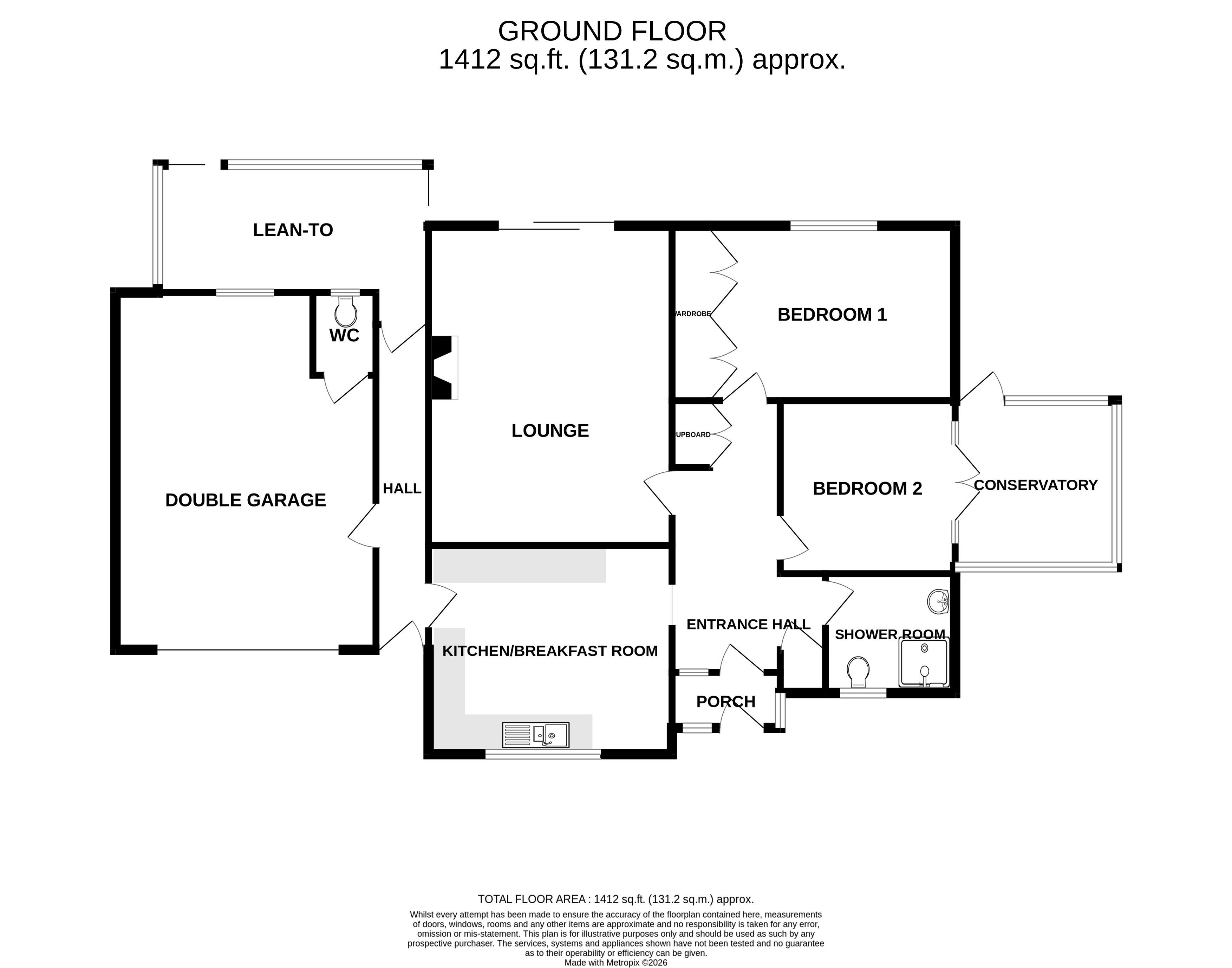 Accommodation comprises: Entrance porch, entrance hall, lounge, kitchen/breakfast room, two bedrooms, shower room, conservatory, side hallway and lean-to.