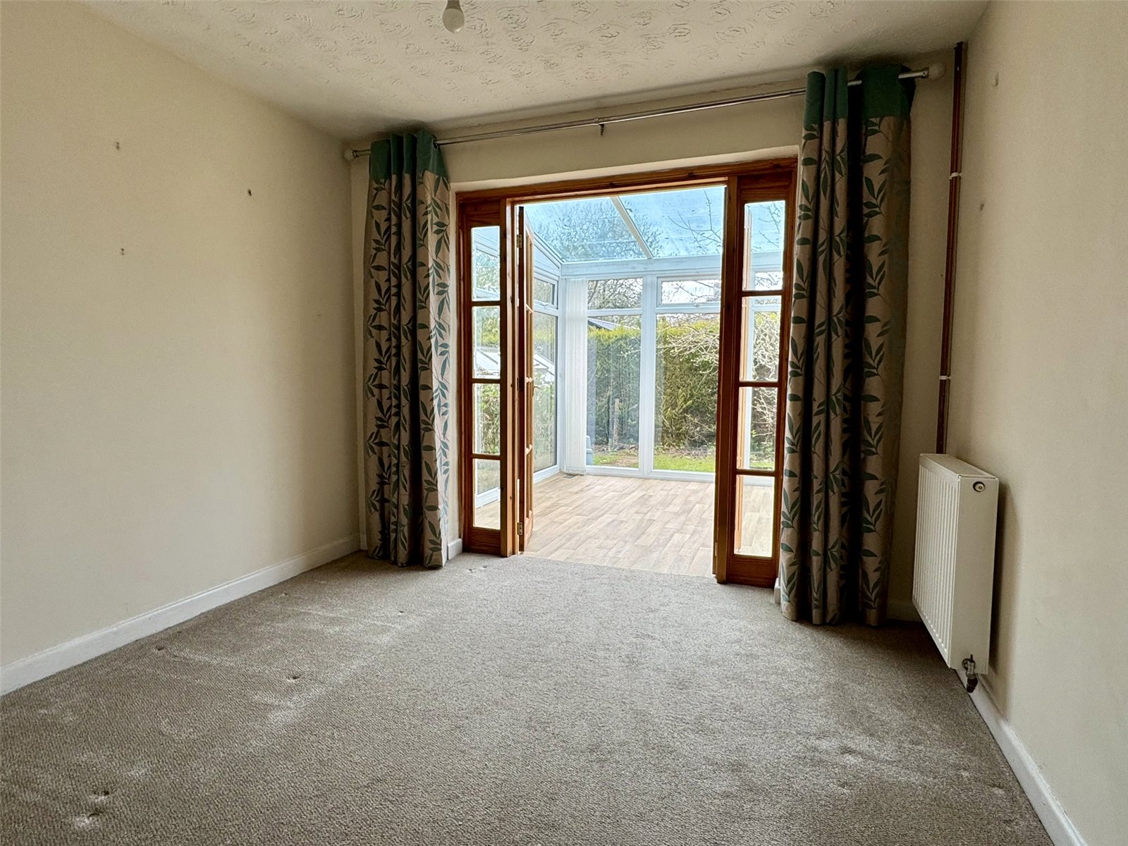 Bedroom Two 9'11" x 9'11" (3.02m x 3.02m). Radiator, telephone point and wooden double doors opening into conservatory.