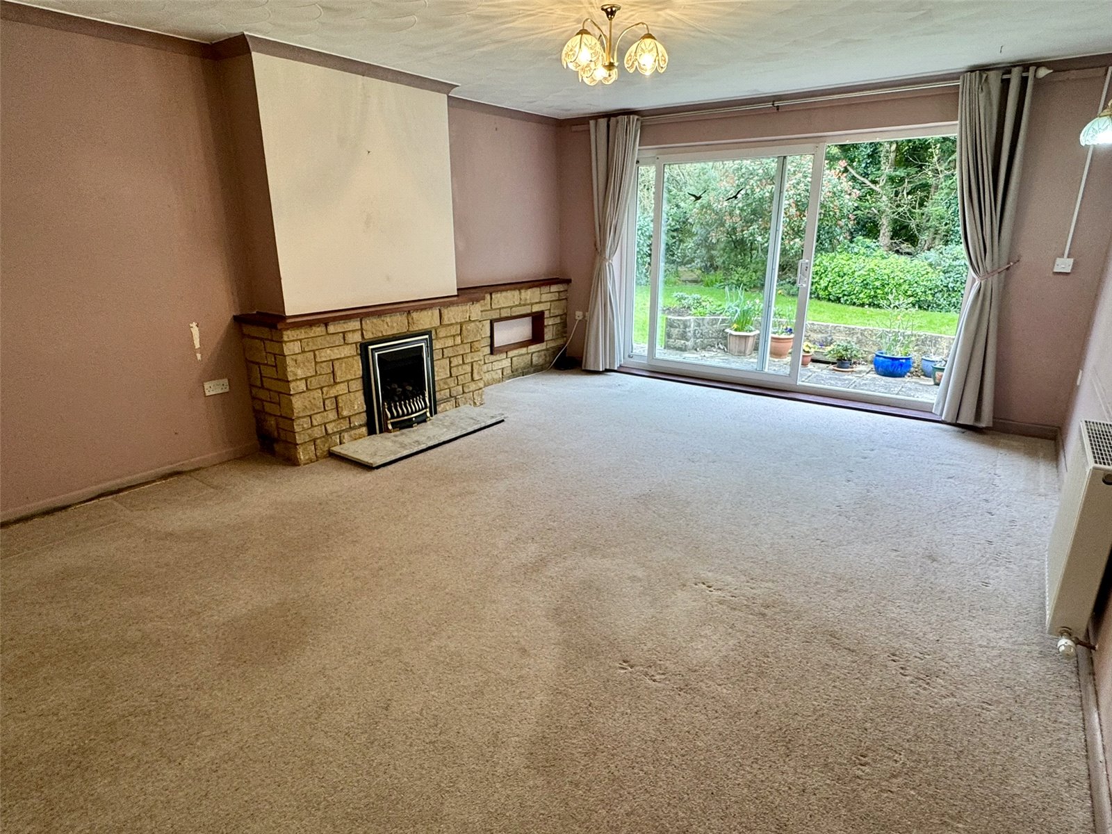 Lounge 18'2" x 13'10" (5.54m x 4.22m). Radiator, television point, stone-built feature fireplace with inset gas coal effect fireplace. Double glazed sliding doors out to rear garden.