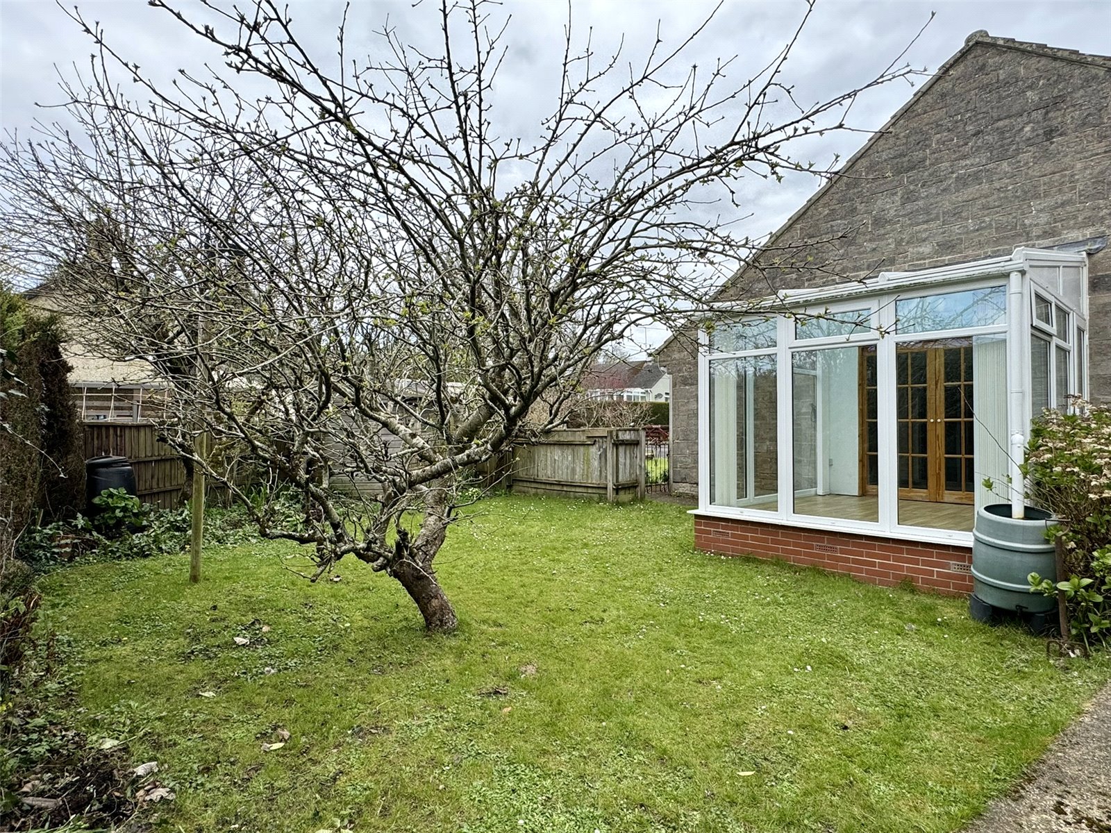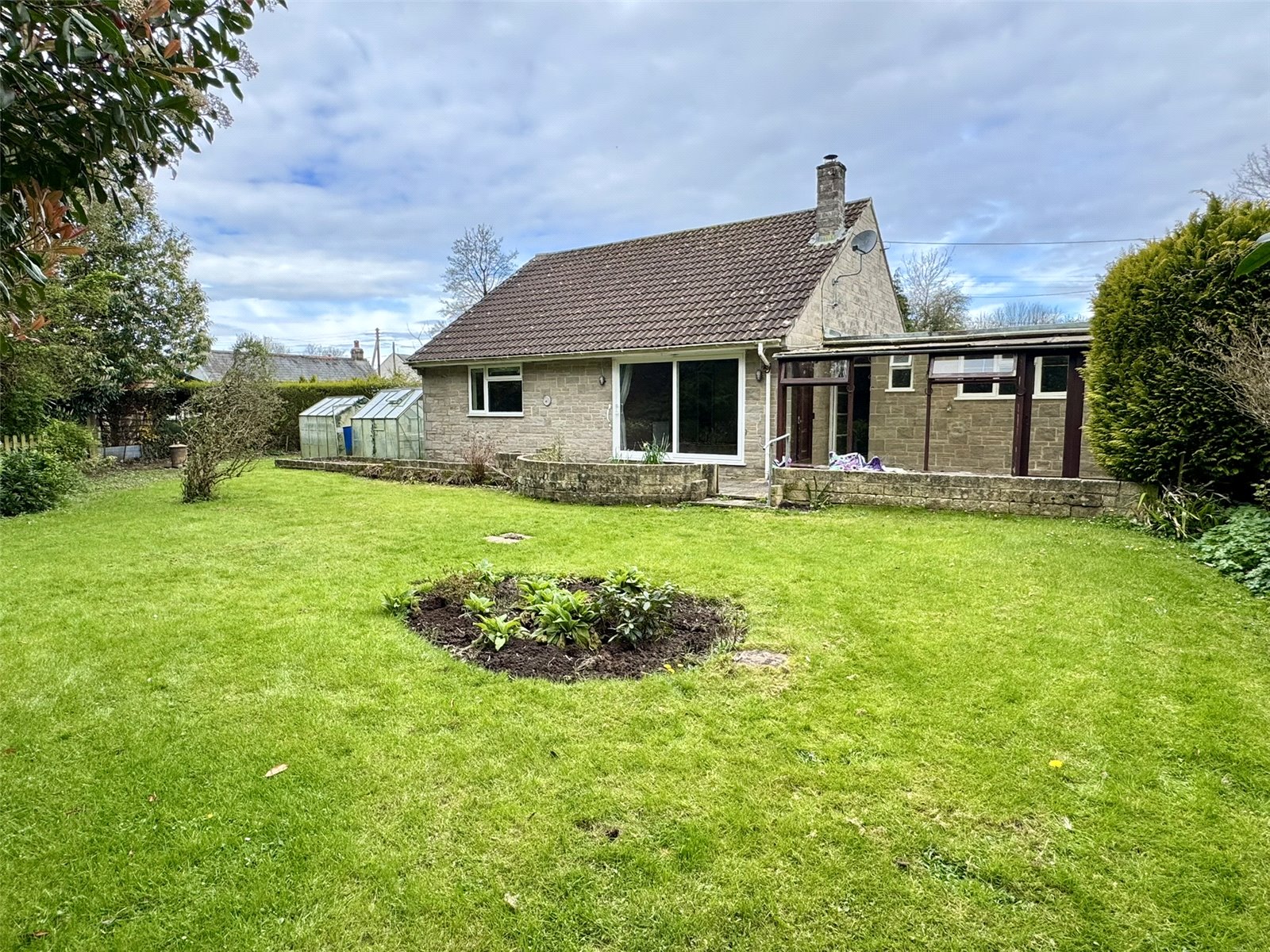 Tucked away down a quiet lane on the edge of the sought-after village of Tatworth in Somerset, this two-bedroom detached bungalow offers a wonderful opportunity for those looking to create a home to their own taste. Enjoying a peaceful setting and sold with the benefit of no onward chain, the property sits within generous, well-maintained gardens that wrap around three sides, providing both privacy and a delightful natural outlook.The accommodation begins with an entrance porch that leads into a welcoming and spacious hallway, setting the tone for the rest of the home. The lounge is of a particularly good size and features an attractive stone fireplace with a gas coal-effect fire, creating a cosy focal point. Double sliding doors open directly onto the rear patio, providing an easy connection to the garden.The fitted kitchen/breakfast room offers ample storage and space for a table, making it a practical and sociable area. Both bedrooms are well-proportioned, with the main bedroom being a comfortable double complete with fitted wardrobes and a pleasant outlook over the rear garden. The second bedroom enjoys double wooden doors that lead into a conservatory, which in turn overlooks the side garden and offers a lovely additional seating area. A shower room serves the accommodation.Externally, the property continues to impress. A large driveway provides extensive off-road parking and leads to a double garage fitted with an electric door. At the rear of the garage is a useful W.C., and a personal door opens into a side hall that connects through to a wooden lean-to with views over the rear garden. The gardens themselves are a particular feature, being thoughtfully maintained and mainly laid to lawn with patio areas, all enclosed by fruit trees, hedging, and mature planting. To the rear, the grounds enjoy a charming outlook, backing onto a small brook, enhancing the sense of tranquillity.While the property would benefit from a degree of modernisation, it offers excellent potential in a desirable village location, making it an appealing prospect for buyers looking to personalise a home in a peaceful yet convenient setting.