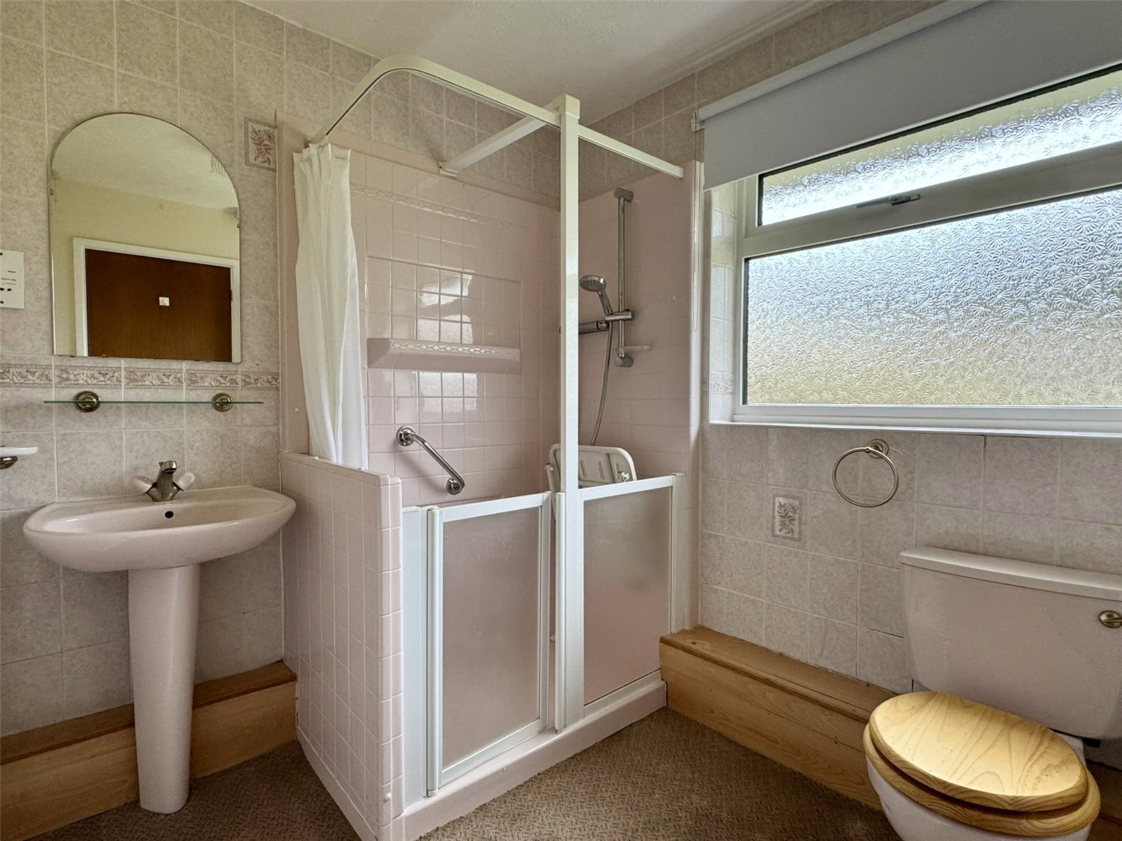 Shower Room Fitted with a three-piece suite comprising shower cubicle with mains shower, low-level W.C. and pedestal wash hand basin. Radiator, shaving point and opaque double glazed window to the front aspect.