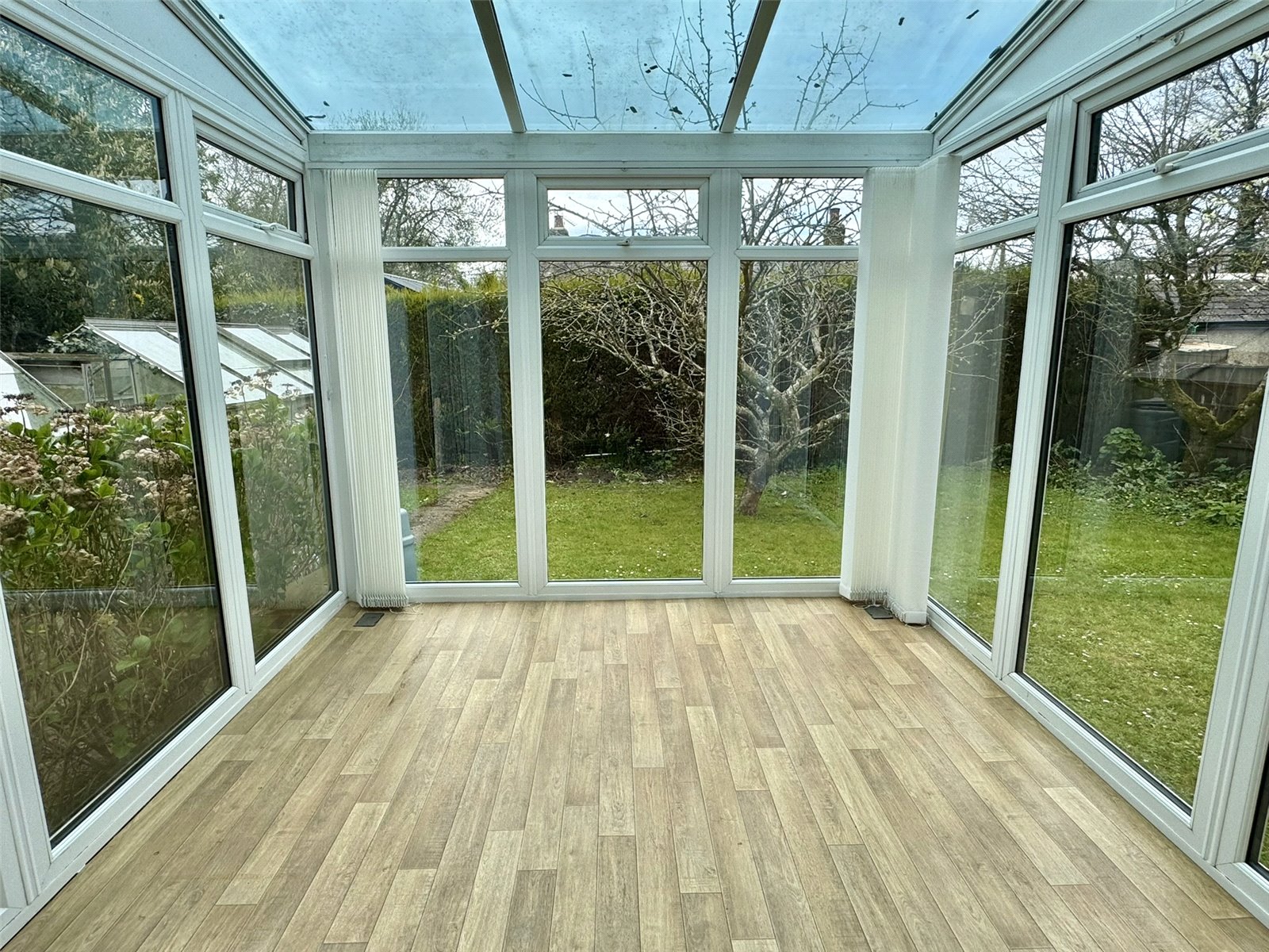 Lean-to 15'5" x 7'6" (4.7m x 2.29m). Of wooden single glazed construction with two sliding doors leading out onto the rear garden.