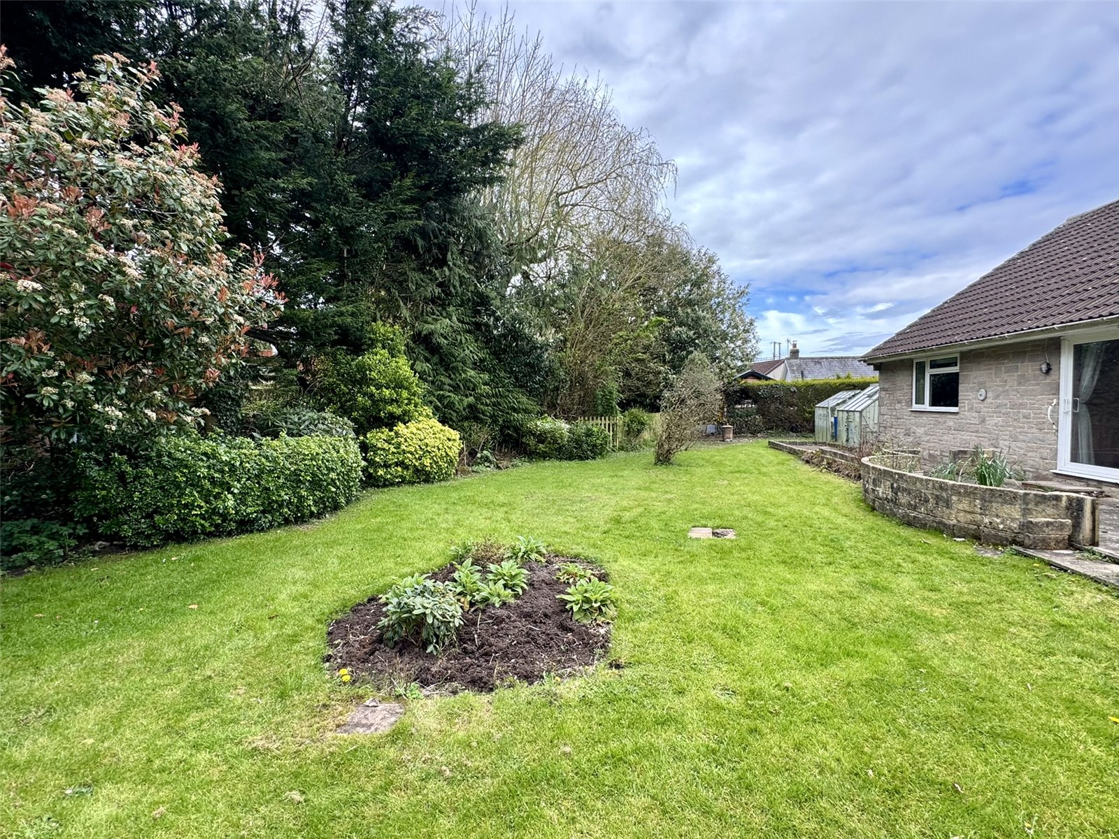 Outside A five bar wooden gate gives access into a large driveway providing off street parking for several vehicles whilst giving access to the double garage, main entrance door and side hall door. The front garden is primarily laid to lawn enclosed by flower beds housing a variety of mature plants and shrubs with mature tree. A gate to the side of the double garage leads through to the rear garden. A further gate leads through to the side garden which is laid to lawn housing fruit trees, wooden storage shed and greenhouse. The side gardens opens through to a lovely rear garden enjoying a high degree of privacy enclosed by a selection of mature planting and trees backing onto a small brook. The garden enjoys a large lawned area with step up to the rear patio providing a lovely space for entertaining/outdoor dining.