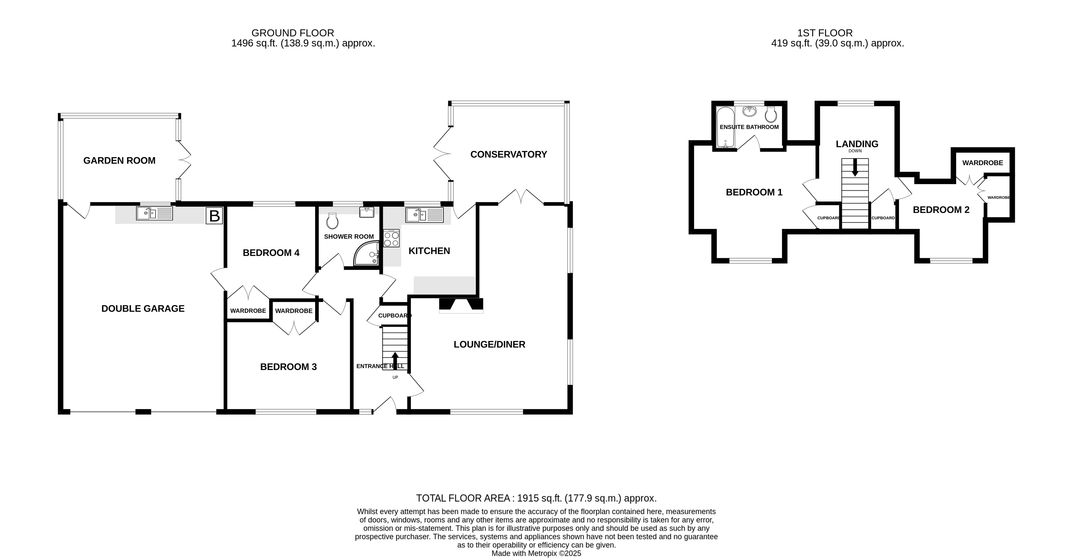 First Floor: Main bedroom with ensuite bathroom and second bedroom.