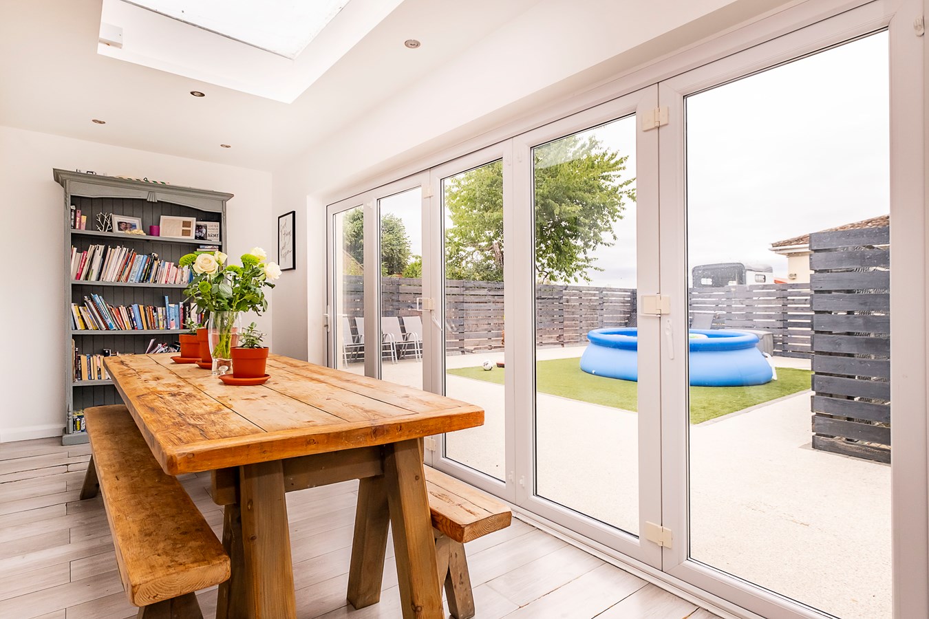 5.92m x 2.13m (19' 5" x 7' 0") Sky light and bifold doors leading to garden.
