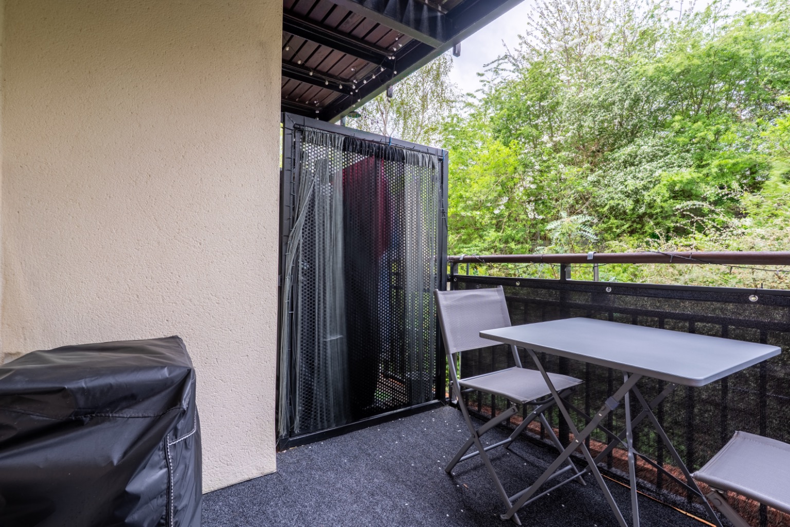 A private balcony extends the living space outdoors and has been thoughtfully upgraded with an external power sockets, lighting, and specialist outdoor carpeting—creating an ideal space to relax and unwind. Residents also benefit from full access to a well-maintained communal garden laid to lawn.