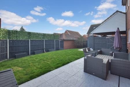 The rear garden has a patio area and is also laid to lawn with side gate access to the covered car port that can accommodate 2 or more vehicles. There is also an EV charging point.