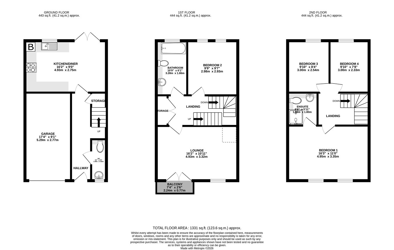 The first floor offers a spacious landing with double fitted storage cupboard, a good size lounge with french doors leading onto the balcony, a fourth bedroom/office if desired and a family bathroom.