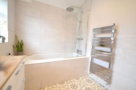 The property is served by a stylish tiled bathroom suite comprising of a large vanity unit with a counter top basin above, bath with tropical rain head shower over, and a W.C.