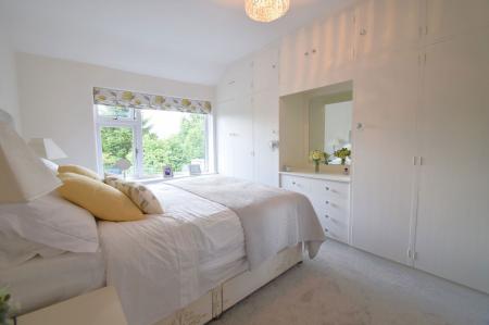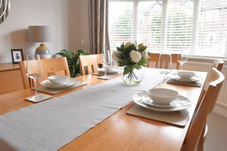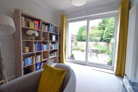 Opening through from the entrance hallway is the beautifully appointed dining room. Well lit via a large south facing bay window overlooking the frontage, this room offers a superb space for formal entertaining and dining. A square archway opens through to the extended living room boasting a high corniced ceiling and double glazed sliding doors opening through to the rear gardens.